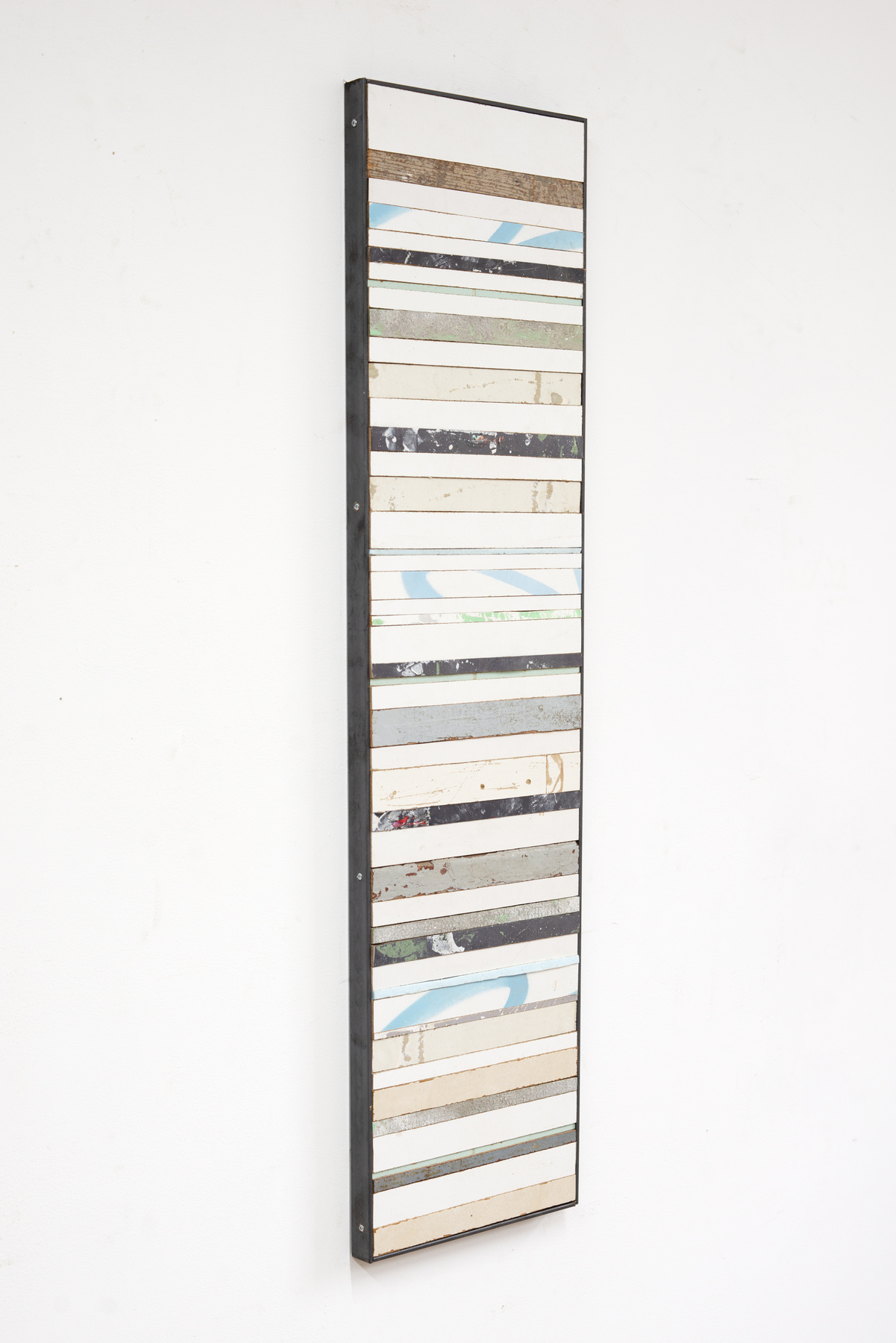 Im Atelier manifestiert sich diese Erkundung der urbanen Umgebung in einer skulpturalen und poetischen Darstellung von Materialität und Verfall. Durch das Kombinieren, Umordnen, Stapeln und Verändern der gefundenen Relikte schafft Braam Bildobjekte und Skulpturen, die an ihr ursprüngliches Umfeld erinnern, aber dennoch durch Verfremdung und Veränderung endgültig dem urbanen Kontext und ihrer anfänglichen Funktion enthoben sind. Sorgfältig lässt er verschiedene Aspekte über die unterschiedlichen Materialien zusammenfließen und setzt die einzelnen Fragmente zu einem neuen Bild von Natur und Stadt zusammen. Das Zusammenspiel der unterschiedlichen Techniken und gegensätzlichen Materialien veranschaulicht die Wechselbeziehung zwischen dem Menschen und seiner Umwelt. Braams Arbeiten ermöglichen eine Reflexion über den urbanen Wandel und eröffnen neue Perspektiven auf die vertraute Stadtarchitektur.