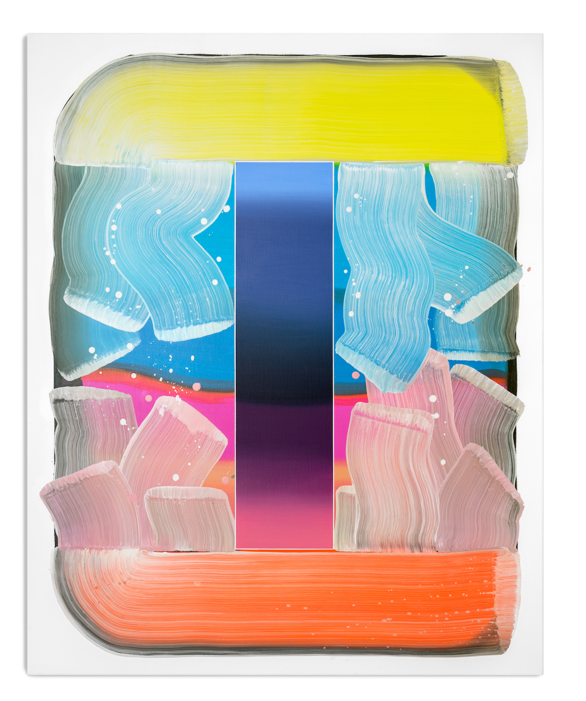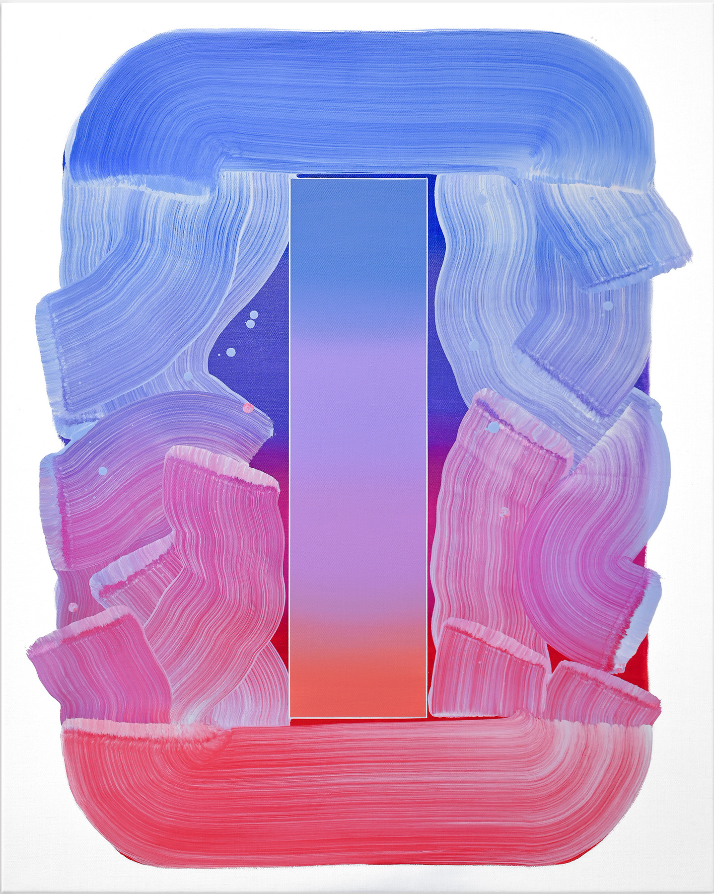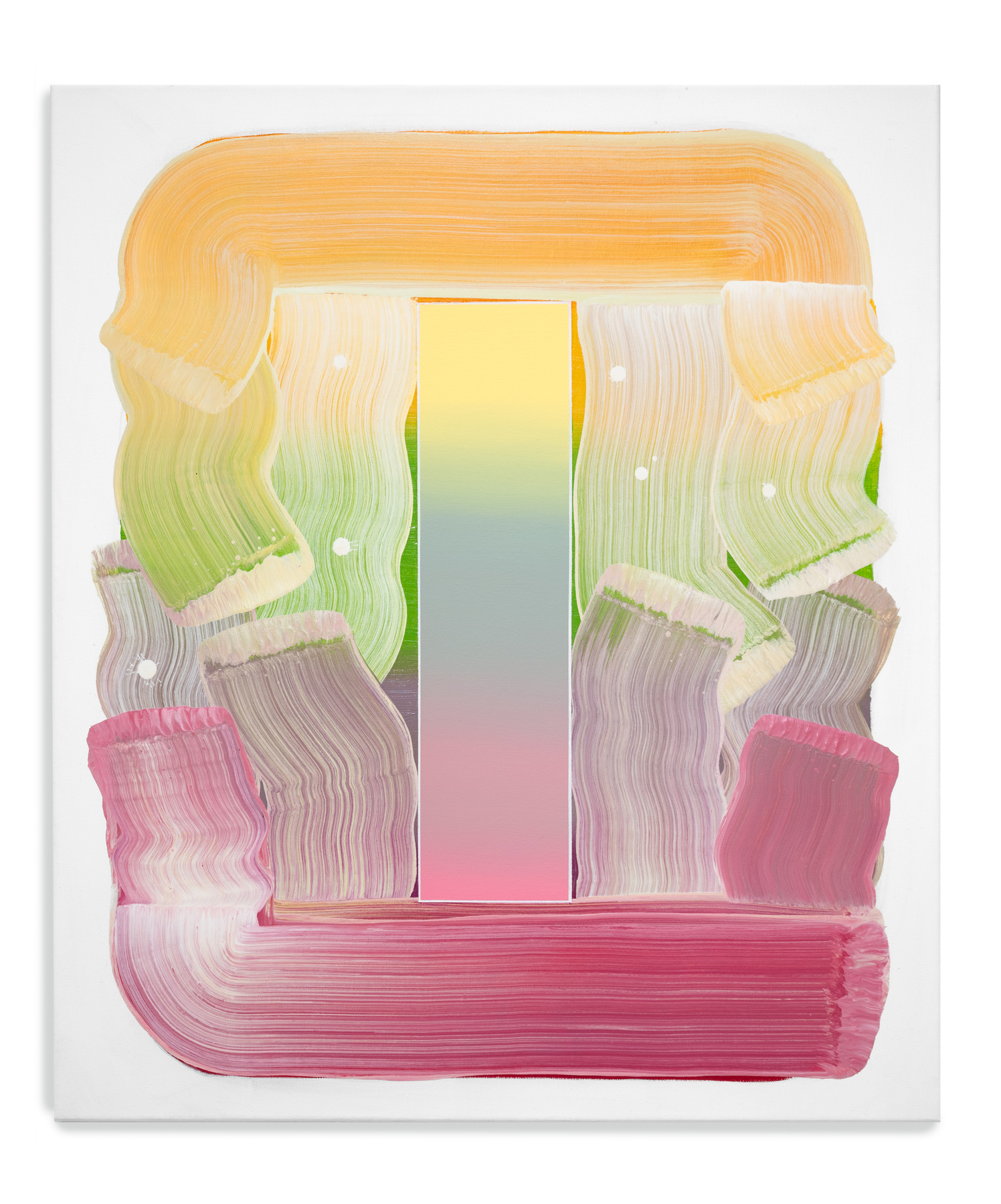 Obwohl ihre Werke in der figurativen Tradition verwurzelt sind, haben sie sich über die Jahre hin zu einer abstrakten Formensprache entwickelt. Im Zentrum ihres Schaffens steht eine von ihr entwickelte Form, die geometrische Präzision mit der spontanen Geste des Pinselstrichs vereint. Diese wiederkehrende Struktur dient als visuelles „Gefäß“, das der Farbe – von Natur aus formlos – eine klare Ordnung gibt. Sie ermöglicht es ihr, sich auf das zu konzentrieren, was sie besonders interessiert: die Interaktion und Wirkung von Farben, ihre Schichtungen und ihre Transformationen im Zusammenspiel.
