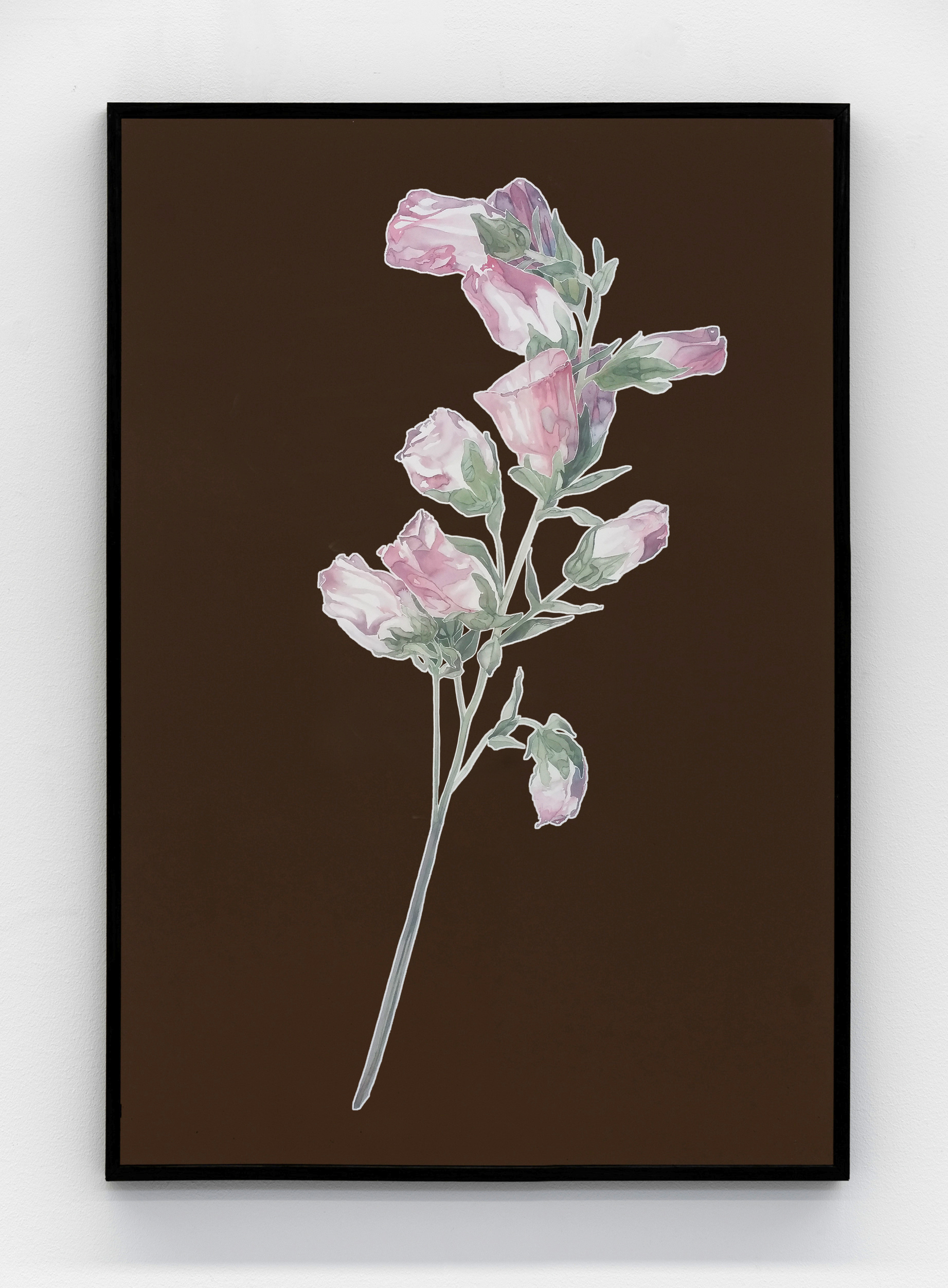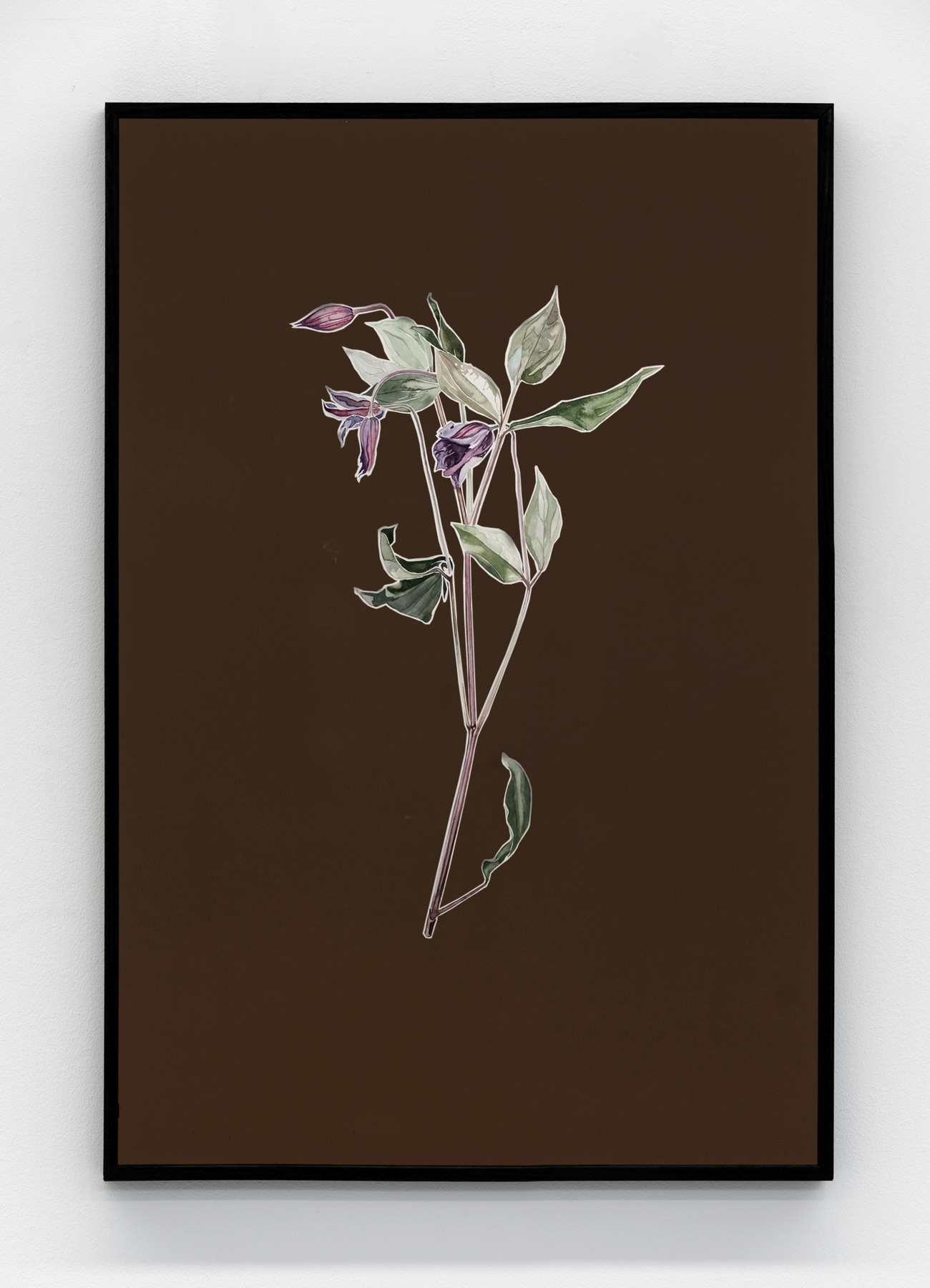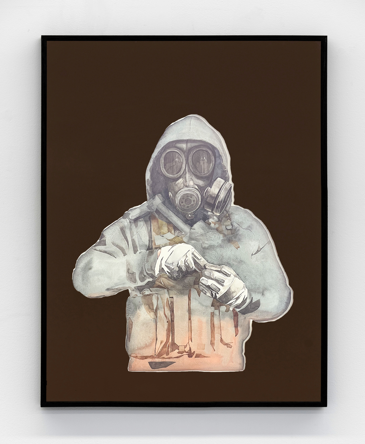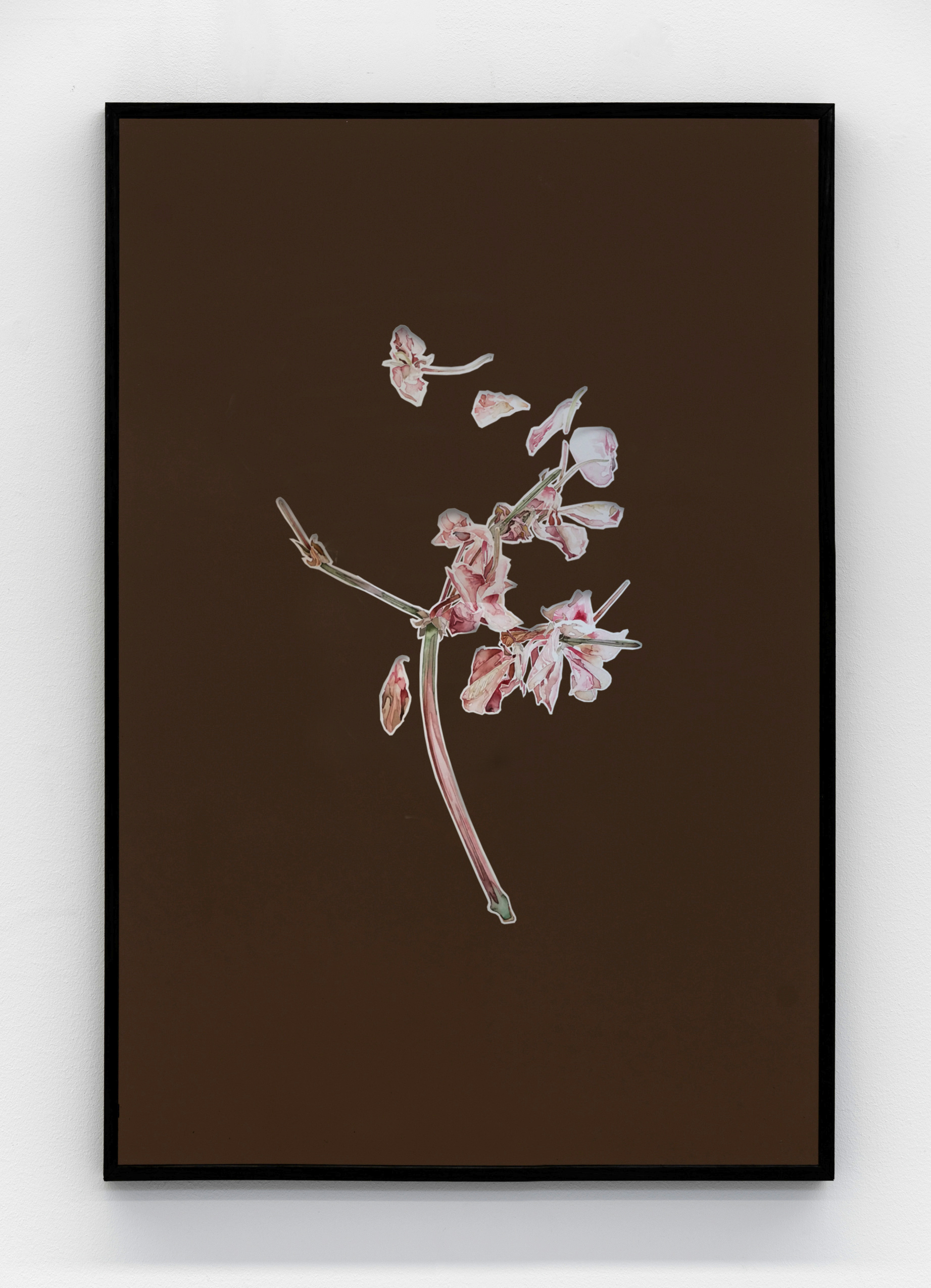 Materialistic desires become evident in smooth and shiny paintings: Achim Riethmann’s new works directly invoke associations with advertising and show cases. Only when approaching them they turn out to be delicate water colour drawings, covered with industrially coated and tinted glass panes. Organic waste, downtrodden and withered blossoms or a hung up down jacket are isolated and taken out of their natural context. They are surrounded by a dark, reflecting surface that seems to be ambivalent in terms of content: On the one hand neither determined nor imaginary sphere, it integrates on the other hand the present and the observers reflected in it into the picture.