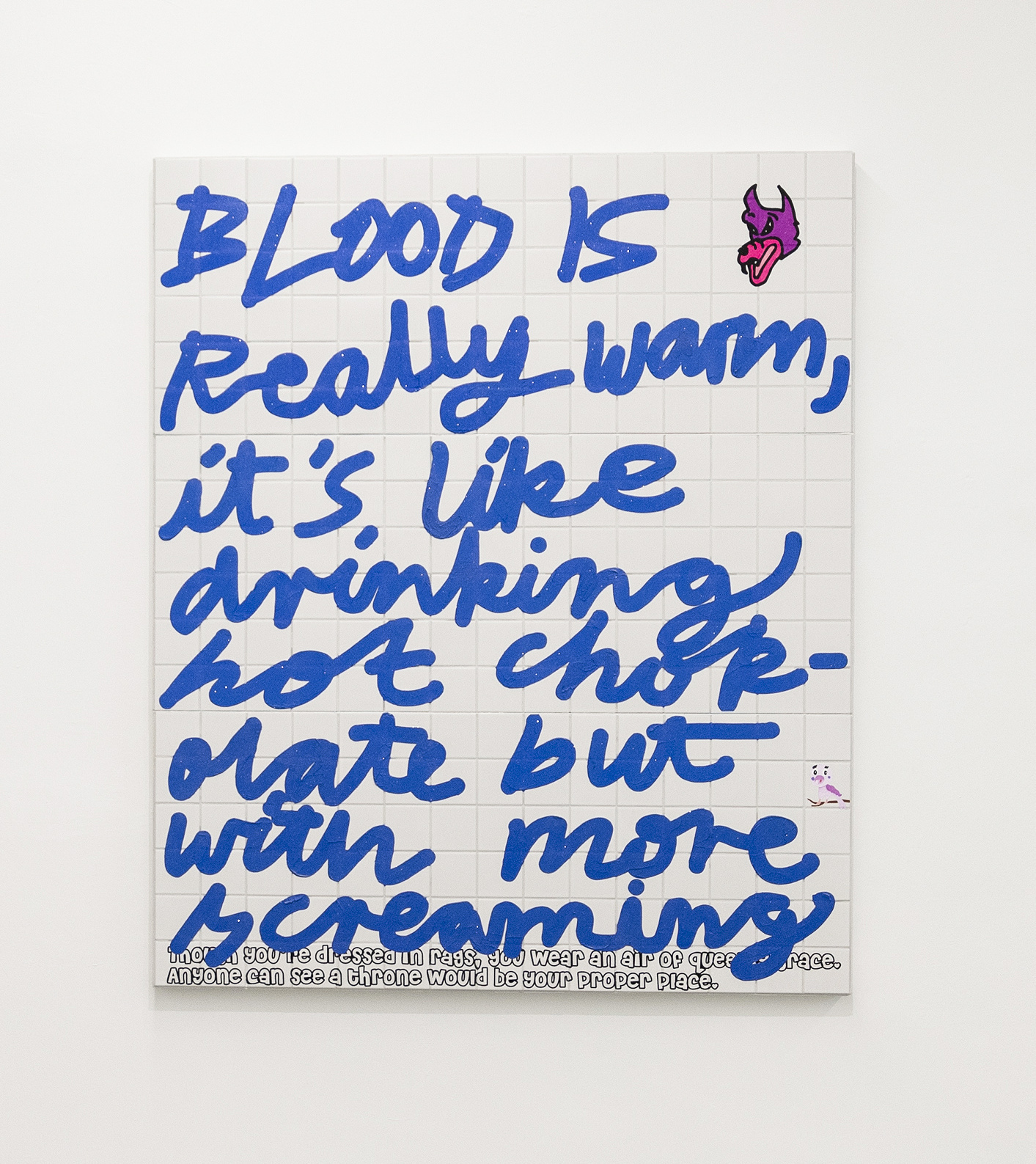 Lukas Glinkowski presents written text that includes quotes from the horror genre. The artist emphasizes not only the visual aesthetics, but also the narrative aspects of the horror genre. By integrating instructive elements, the deeper function of horror as a medium of warning and self-knowledge is reflected.