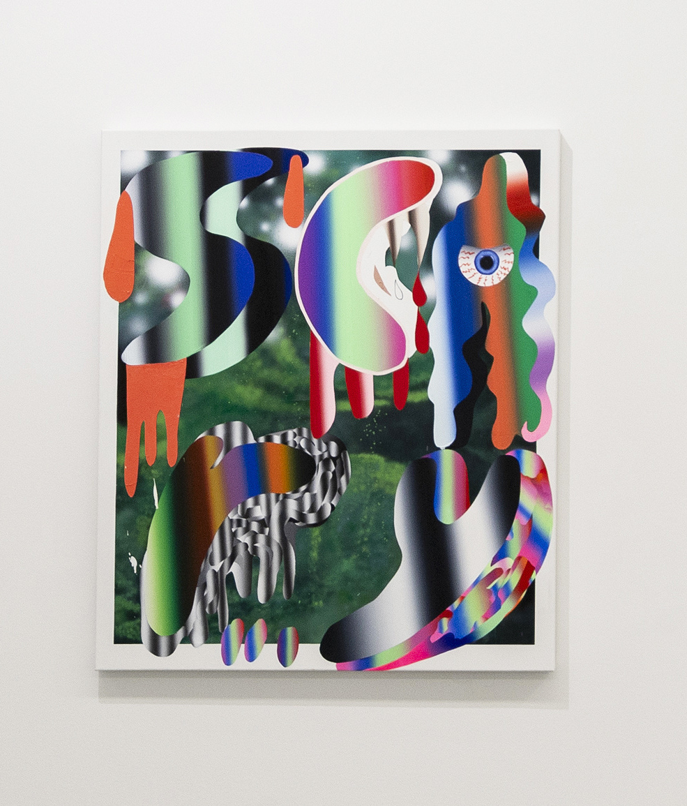 In the exhibition, the artist is once again using the medium of canvas works for the first time. These are characterized by the creation of his own typeface, which is based on the synonyms "scary", "spooky" and "creepy". In this context, the artist explores the rich diversity and nuance of the English language, which has been historically shaped by various sources and influences. The words, through their historical depth and nuance, allow for precise expression and add linguistic diversity to the exhibition.