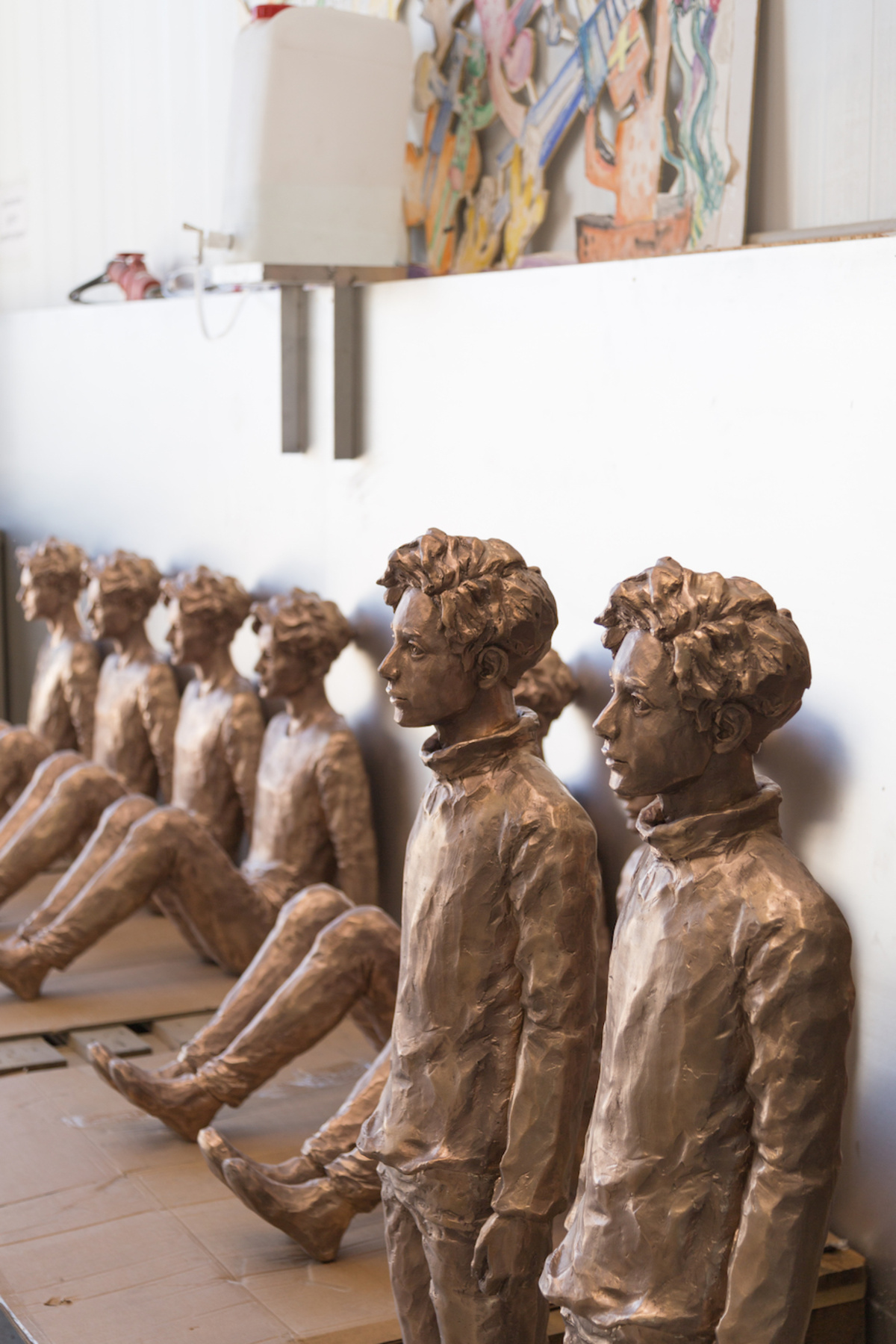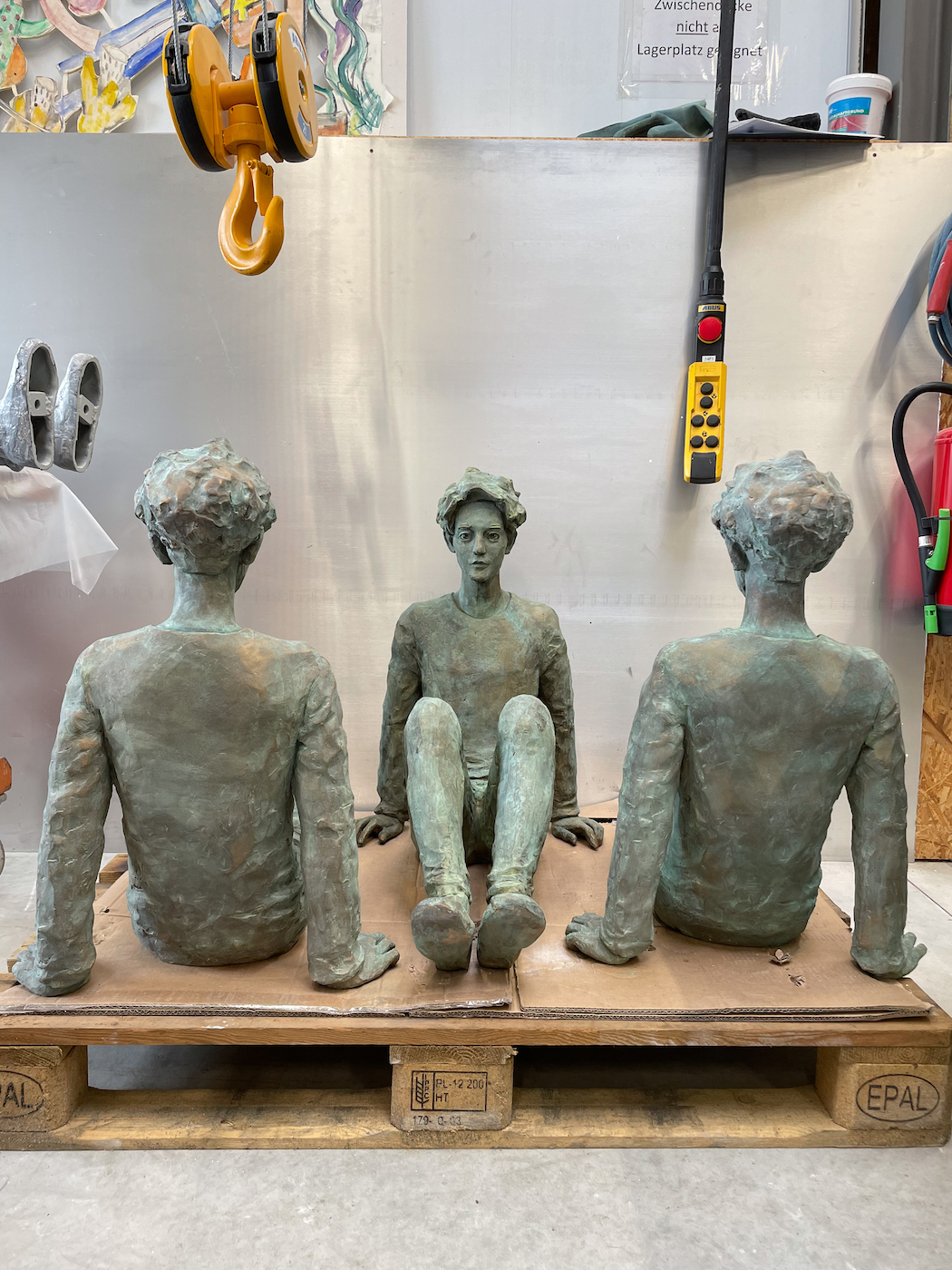 These are his first bronze works, and in the development process it was especially important to Fujiwara to be involved in every step, to be able to give his figures as much love as his unique plastic pieces. Fujiwara applied the light gray patina of each bronze himself - a painterly process that makes each of the figures look different in nuances.