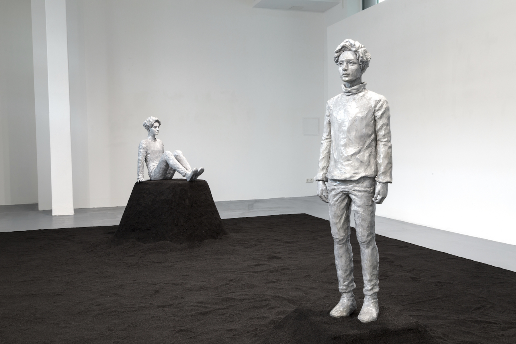 Fujiwara's sculptures, Earth and Wind, are enthusiasts; they bear witness to a romantic longing for the unattainable, they move between worlds. Their contemplative gaze directed into the indefinite, they carry references of Japanese as well as European-Western culture. They seem youthful and yet ageless, androgynous and detached from any stereotypes - isolated from this world, yet anchored in the moment, in being so.