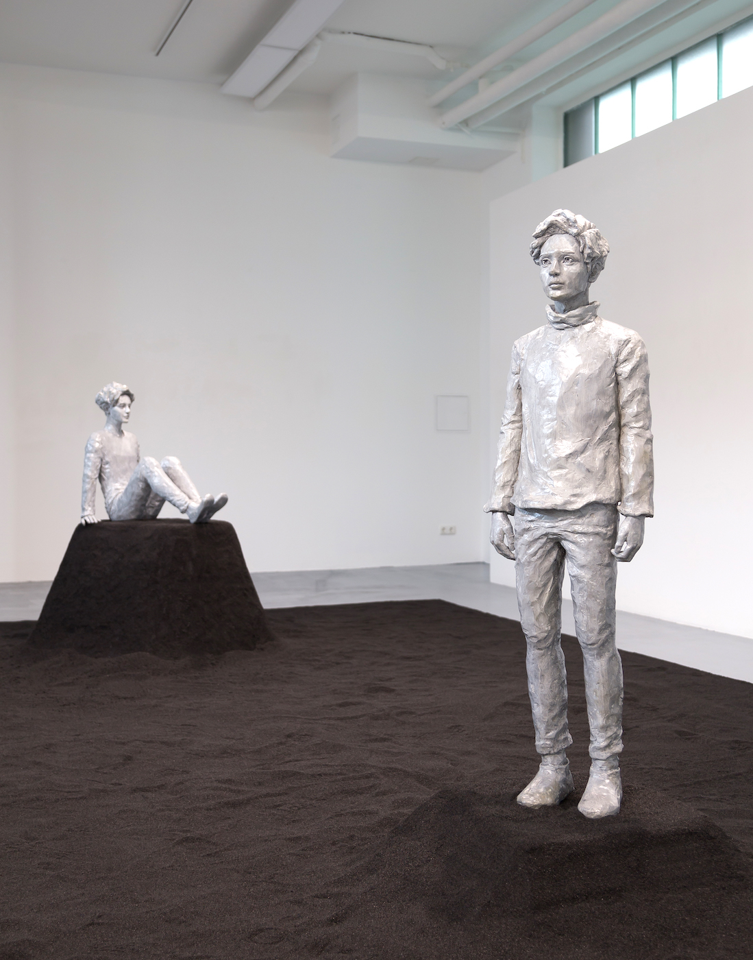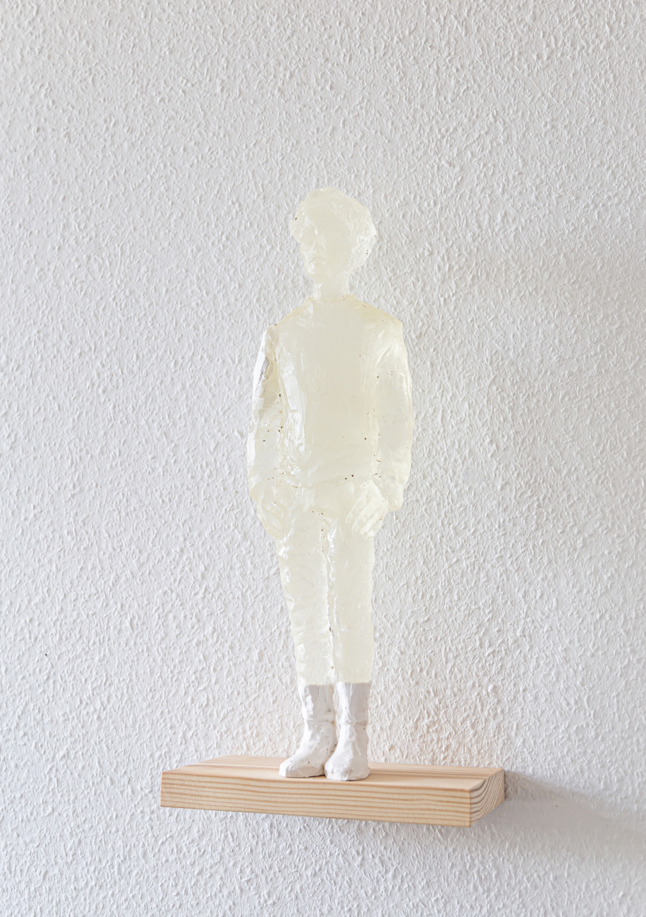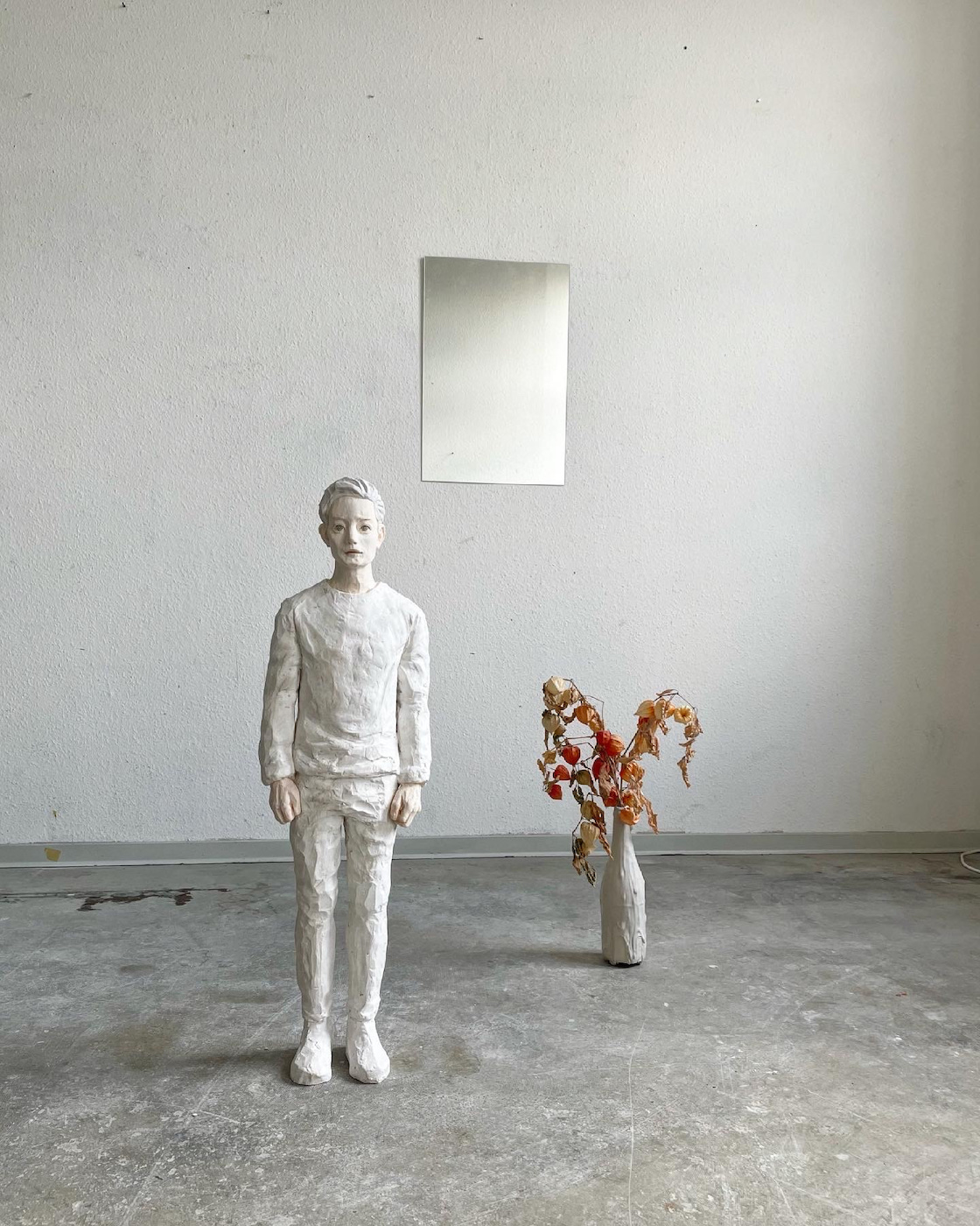 Fujiwara's sculptures, Earth and Wind, are enthusiasts; they bear witness to a romantic longing for the unattainable, they move between worlds. Their contemplative gaze directed into the indefinite, they carry references of Japanese as well as European-Western culture. They seem youthful and yet ageless, androgynous and detached from any stereotypes - isolated from this world, yet anchored in the moment, in being so.