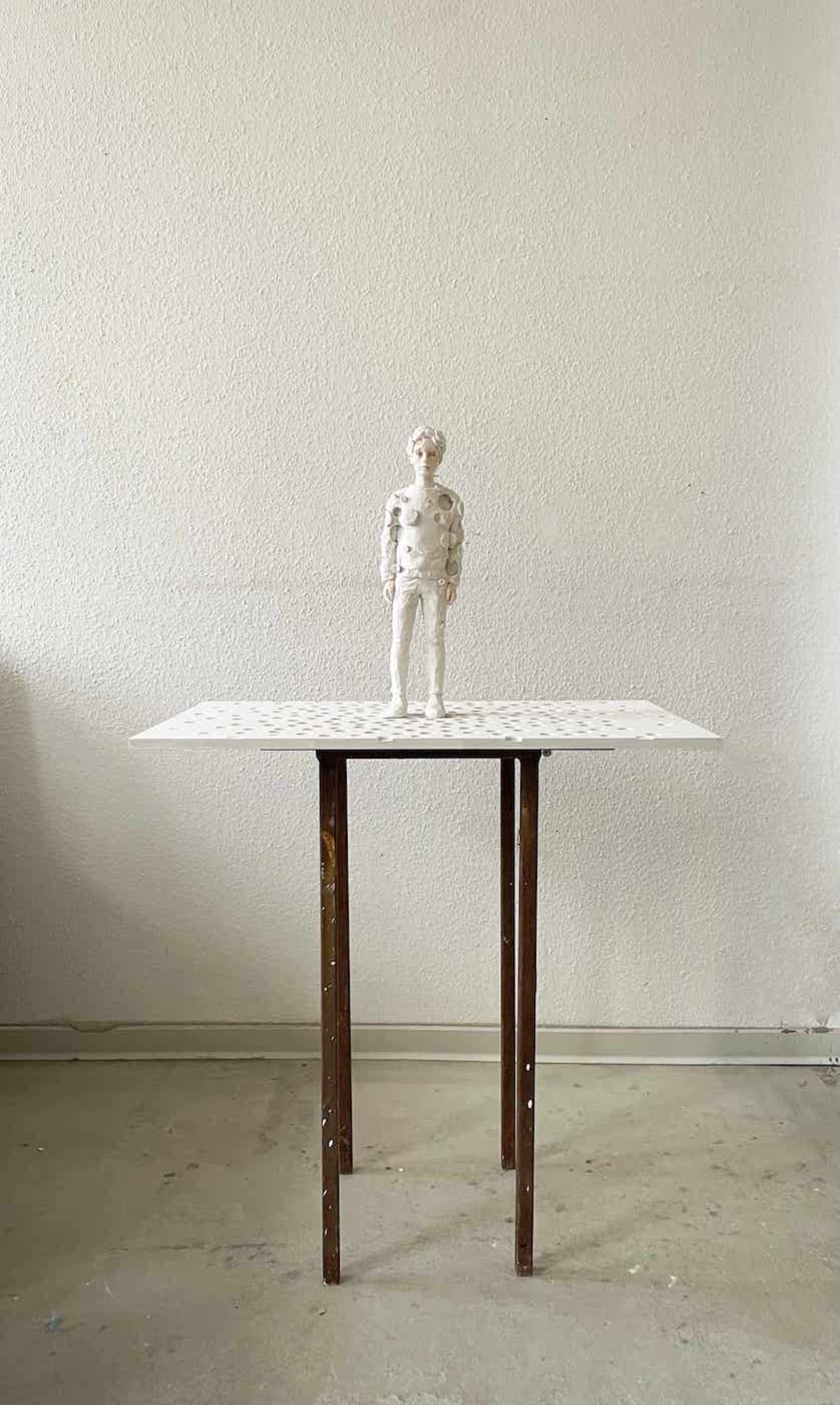 Hirofumi Fujiwara describes the creation process of his figures as a chain of coincidental moments. Since all he has left are his memories of what he has seen, the artist allows himself to be guided by the elaborate working process itself. At the beginning of each sculpture, there is only a rough idea. Where the creative journey will lead him is completely unclear. Every step of the work, every decision for or against the expression of a figure element influences the steps that follow.