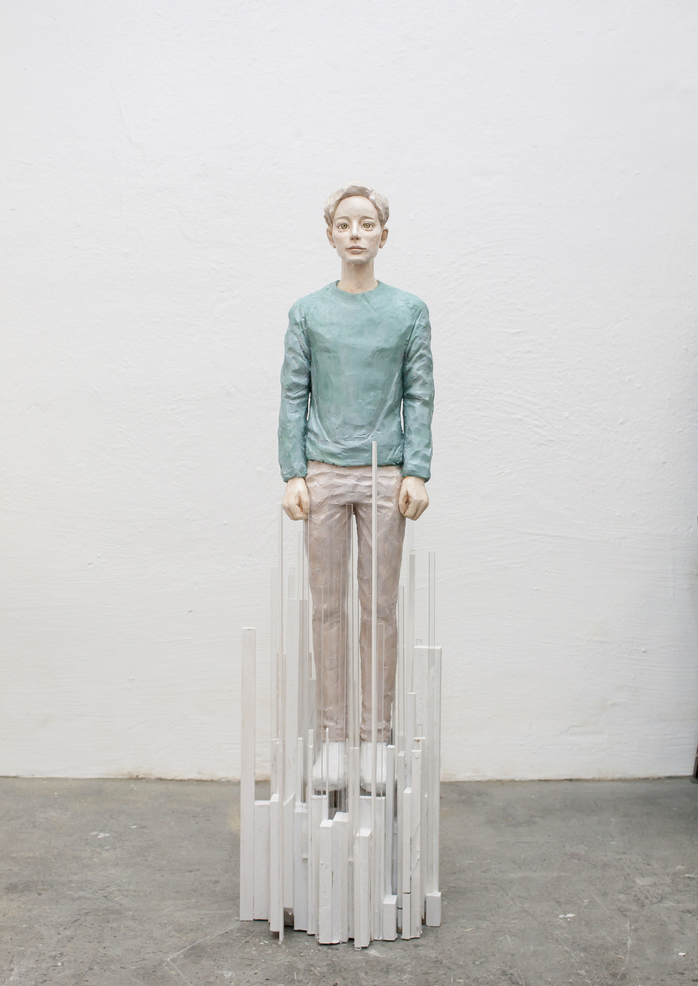 Conceptual guideline and a special concern of the artist is the possibility of a multitude of interpretative approaches. Just as with the human being himself, the figures are to remain unfathomable to a certain extent. The complex and mysterious nature of each person is what motivates Hirofumi Fujiwara to create his figurative works. This aspect also relates to the viewer: as different as the recipients are, they will recognize just as many, different figures, construct diverse stories, and make countless interpretations. In doing so, Hirofumi Fujiwara thematizes the coexistence and opposition of inner and outer qualities. Even if the inside of a rigid, lifeless figure seems unfathomable, it is all the more exciting to develop the outside of the sculptures into a story, and to do so completely independently and detached from the artist's ideas.