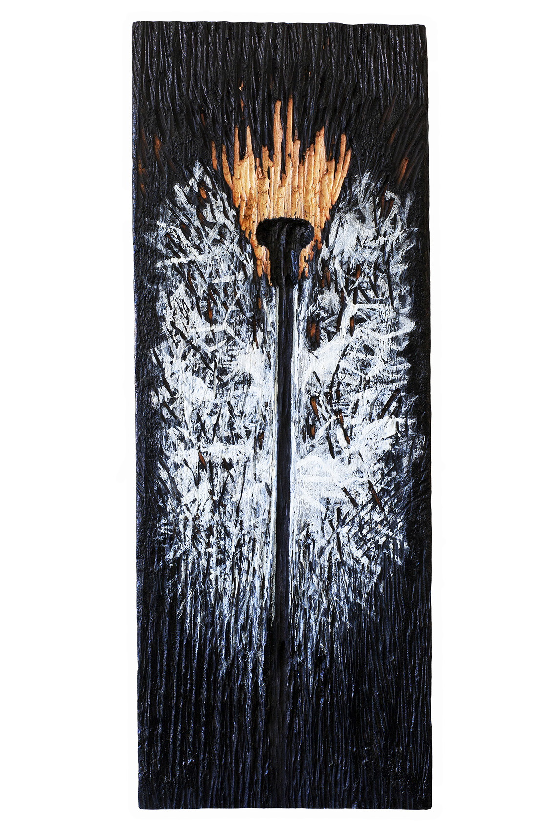 The works get their clear object character from their strong materiality. Because Lena Schmidt works with wood and therefore fits into a historical sculptural tradition. And yet she breaks with this by emphasizing not only the aspect of the natural, but above all its contradiction to the industrial in whose context her material is used. It is the disused, left behind waste product of the industrial wasteland: pillars, ply wood and poles. Each of these unique pieces bears traces of its original origin. The consequences of the decomposition process, whether corrosion, weathering or color imprinting by the sun, are almost engraved in the memory of the wood. On this surface, Schmidt's drawn and scratched motifs depict the history of the place, part of which is the wood itself.