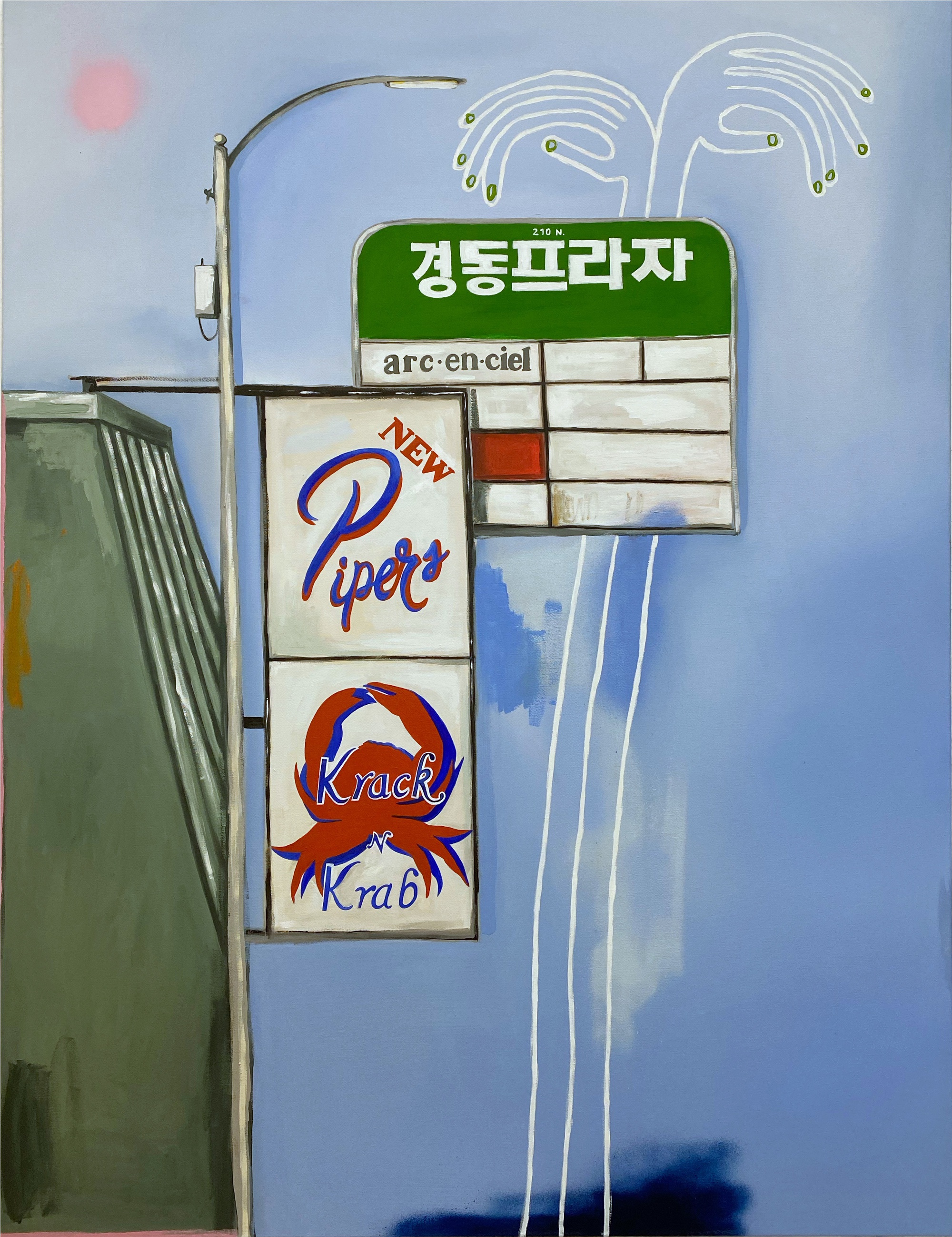 A comic-like stylized figure characterizes Sophie Ullrich's paintings. This protagonist, reduced to outlines, forms the interface between narration, abstract pictorial elements and schematic backgrounds in the paintings. The figure of the protagonist already formed in Sophie Ullrich's works during the course of her studies and has since enabled the artist to fill her pictorial worlds in every conceivable way. Surreal long limbs and frequent headlessness of the figure create a humorous impulse in the sceneries of the works.