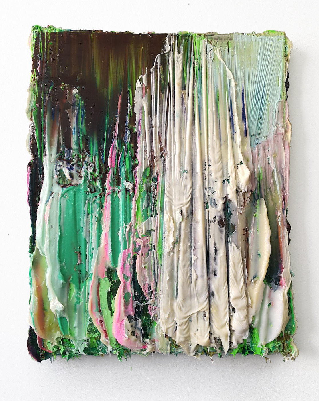 Fasziniert von dem Phänomen, dass aus Energie Materie entsteht, benennt Lev Khesin seine Einzelausstellung Genesis. Die Begeisterung für den Ursprung aller Dinge findet sich in der Beschaffenheit seiner Arbeiten wieder, deren außergewöhnliche Materialität und Technik die Entstehungsgeschichte verhüllt. Form und Farbe fließen ineinander und verstärken die organische Anmutung, die Intensität der wechselnden Oberflächenbeschaffenheit löst eine optische Vibration aus. Die Tiefe der Bilder, die sie durch vielfache Farbschichten erhalten, laden zu einem Eintauchen ein.