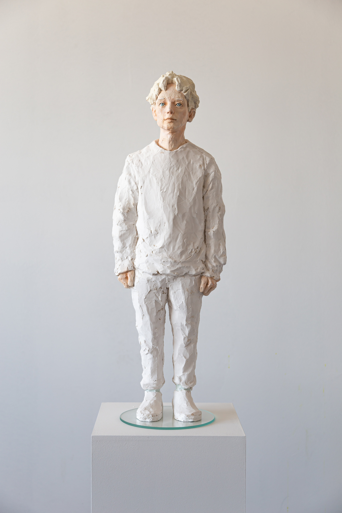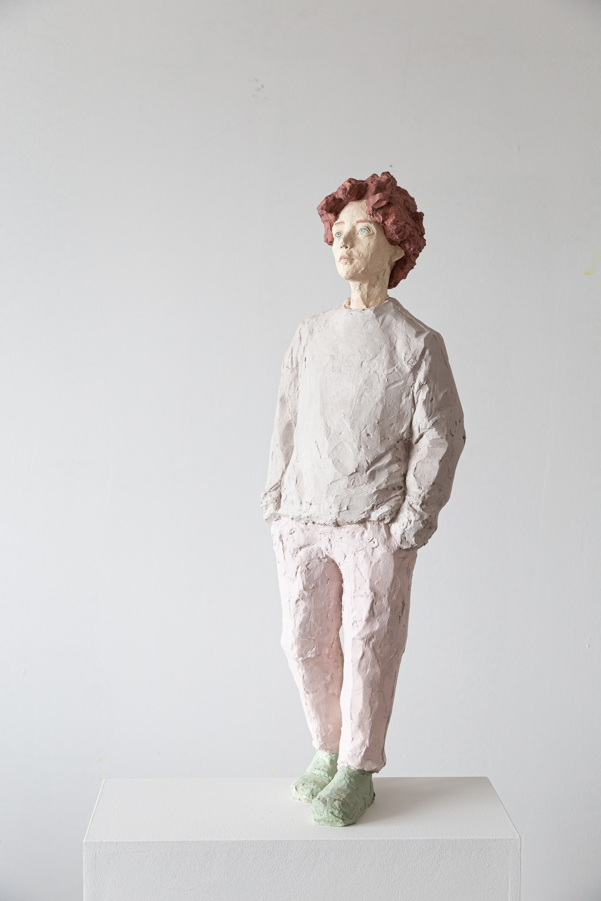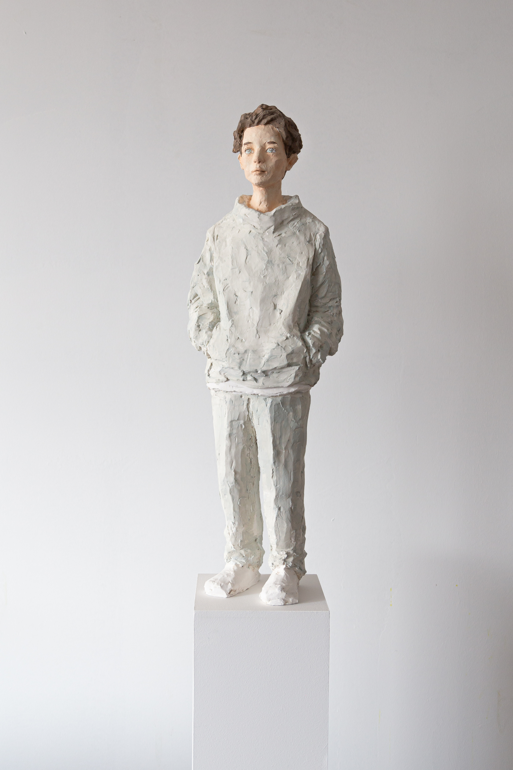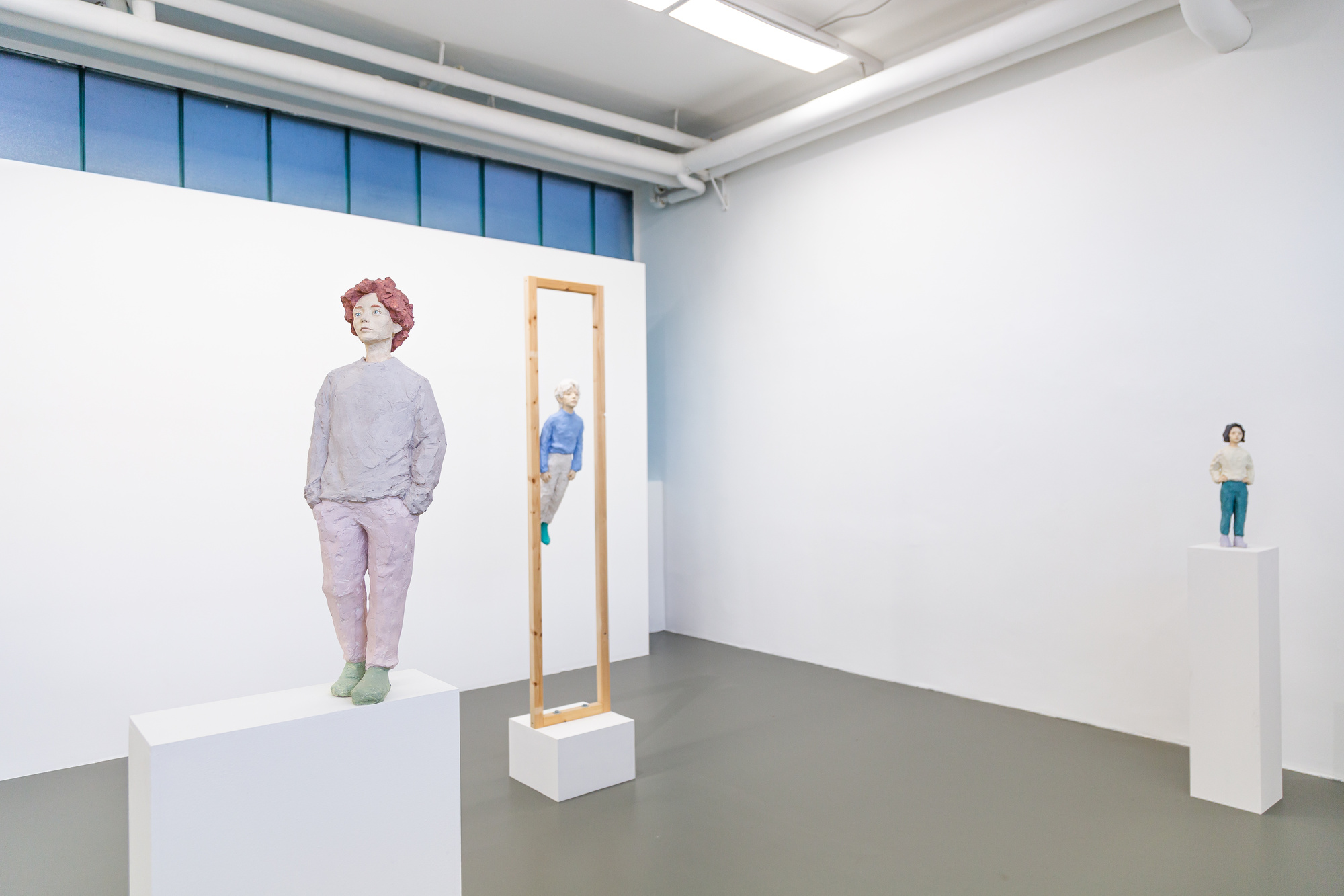 Die Figuren wirken jugendlich und alterslos, androgyn und zeitlos. Sie strahlen eine kontemplative Ruhe aus, während ihr Blick ins Unbestimmte gerichtet ist. Diese Ambivalenz, das Schweben zwischen den Polen, spiegelt sich auch in seiner Arbeitsweise wider. Der Künstler beschreibt seinen Schaffensprozess als eine Verkettung von Zufallsmomenten, in der keine klare Vorstellung die Richtung vorgibt. Vielmehr lässt sich Fujiwara von der Intuition und den Erinnerungen an die Vielfalt der Menschen leiten, die ihm im Alltag begegnen.
