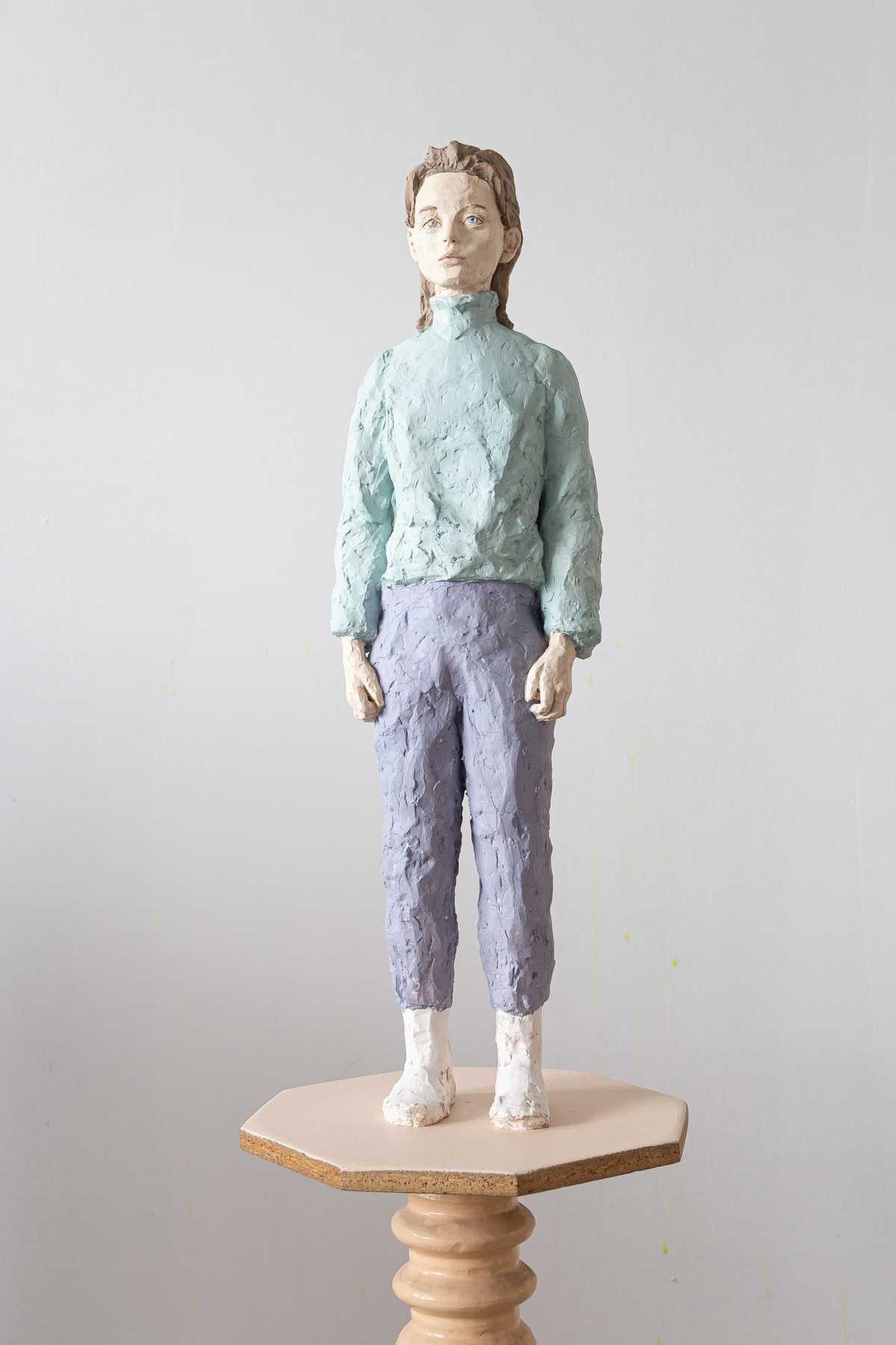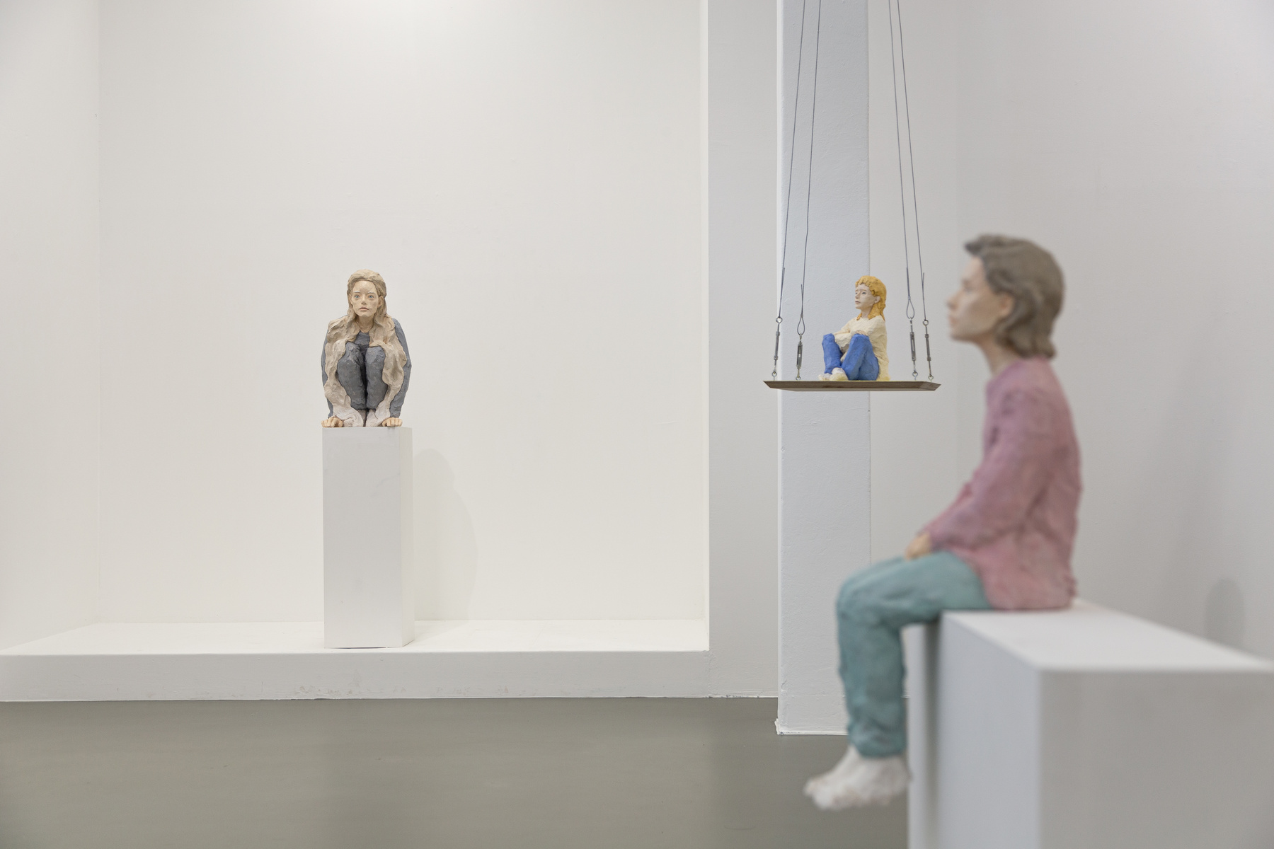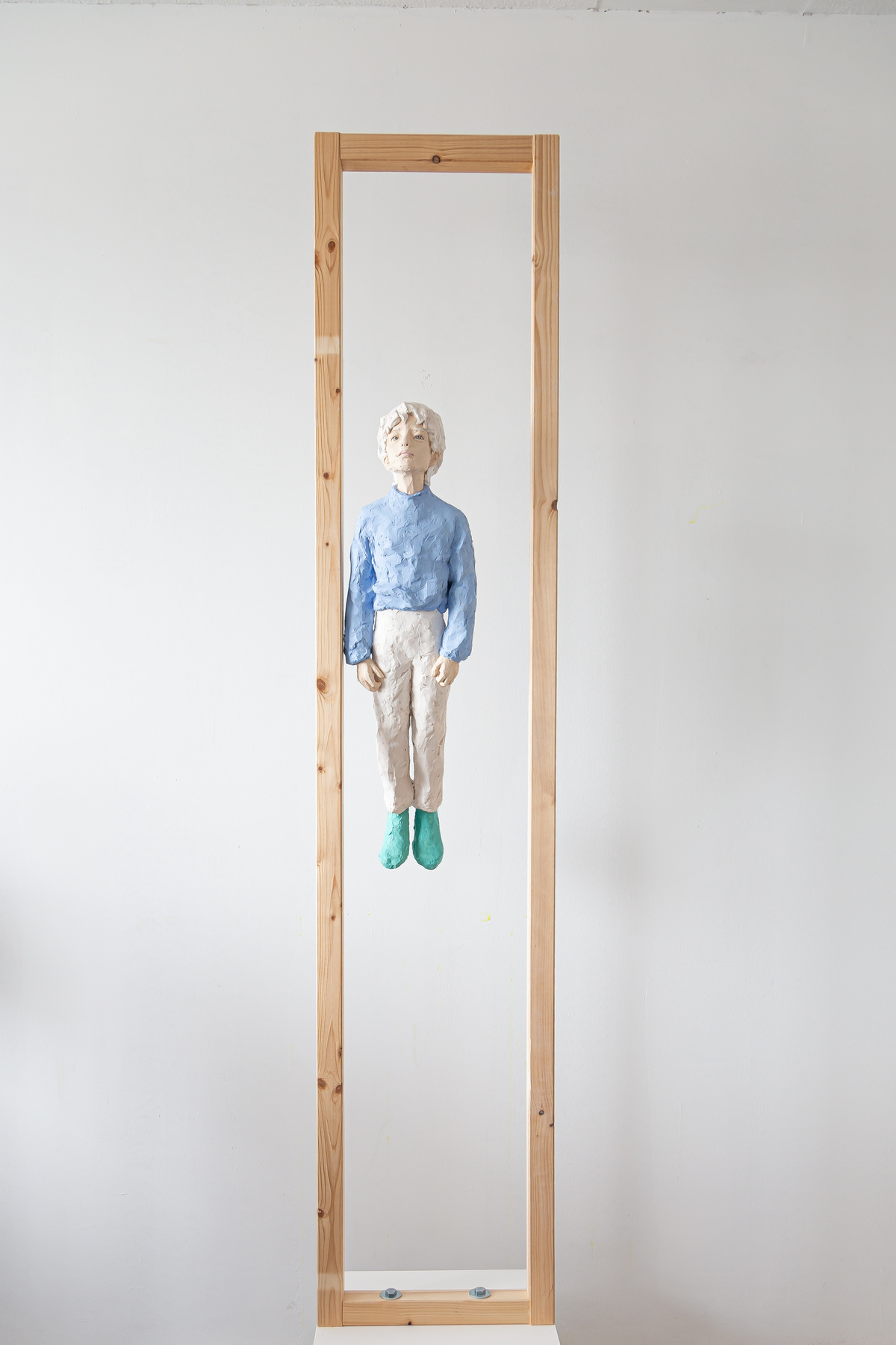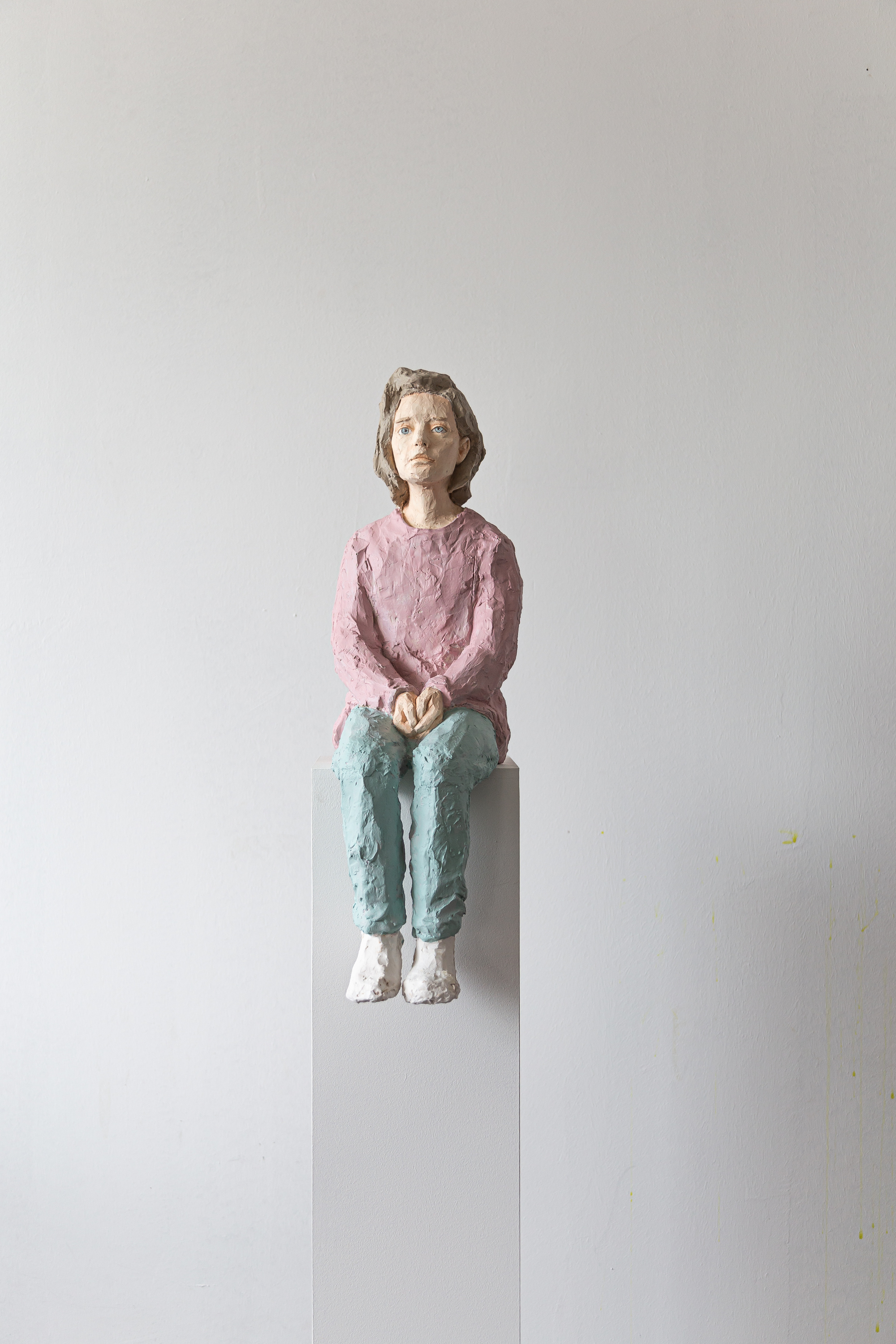 Die Figuren wirken jugendlich und alterslos, androgyn und zeitlos. Sie strahlen eine kontemplative Ruhe aus, während ihr Blick ins Unbestimmte gerichtet ist. Diese Ambivalenz, das Schweben zwischen den Polen, spiegelt sich auch in seiner Arbeitsweise wider. Der Künstler beschreibt seinen Schaffensprozess als eine Verkettung von Zufallsmomenten, in der keine klare Vorstellung die Richtung vorgibt. Vielmehr lässt sich Fujiwara von der Intuition und den Erinnerungen an die Vielfalt der Menschen leiten, die ihm im Alltag begegnen.