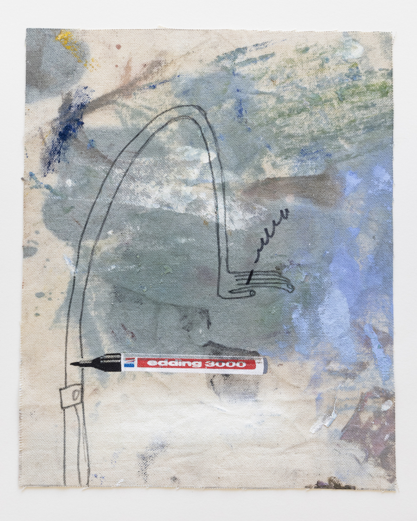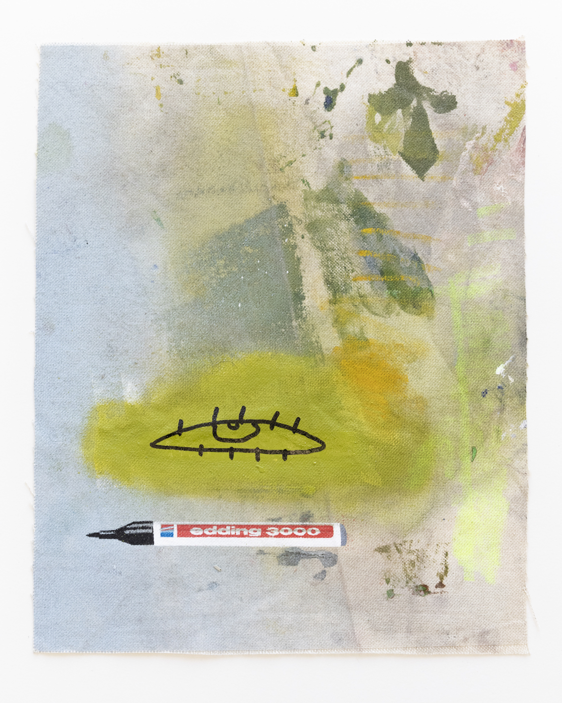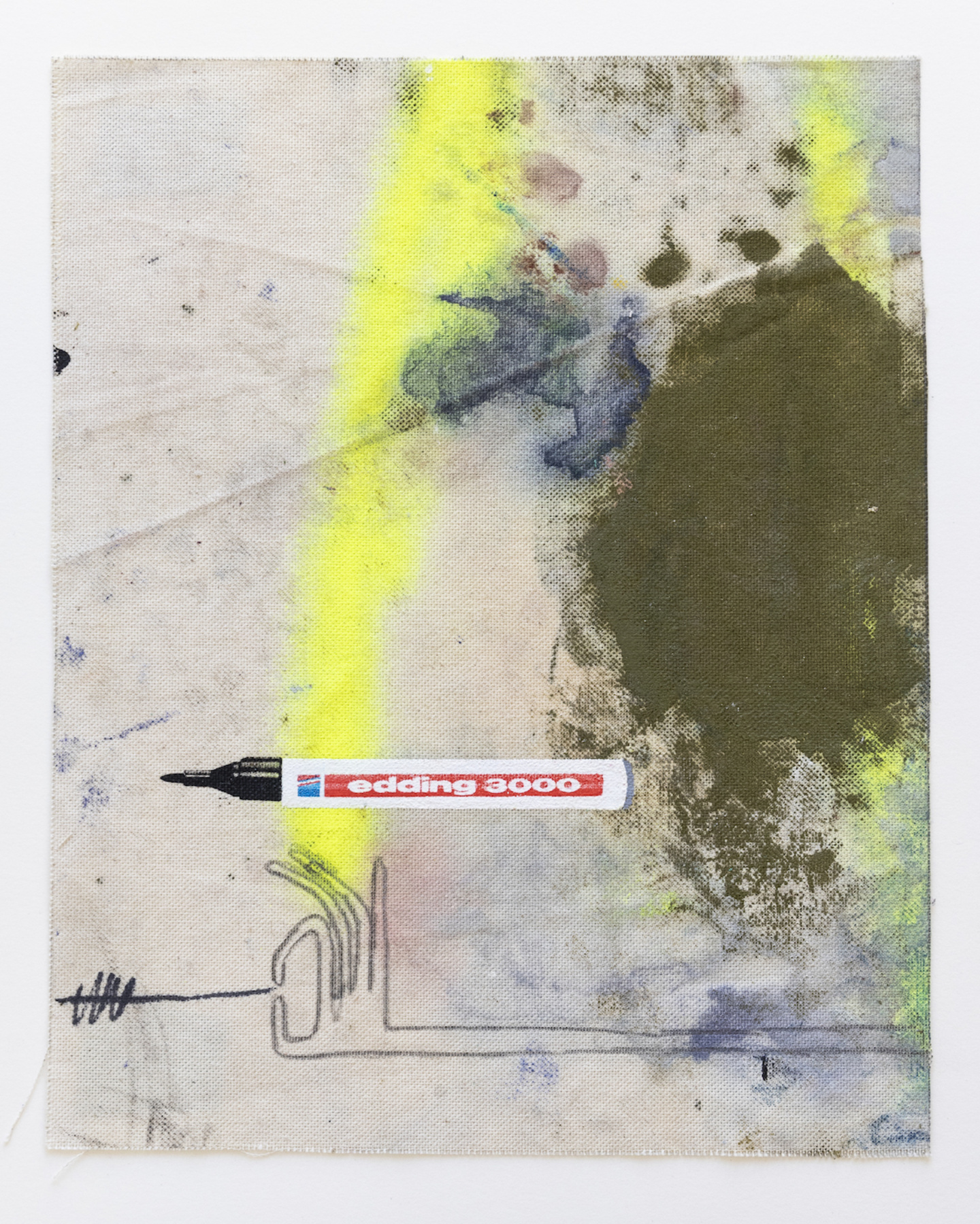 Sophie Ullrich nutzt für ihre Edition Stoffstücke, die beim Bauen der Leinwände abfallen. Auf den sogenannten Malerlappen werden die Pinsel abgestrichen oder Farbkombinationen ausprobiert, die Ableger ihrer Malerei sammelt und zieht sie als Skizzen immer wieder für Ideen heran. Der Farbauftrag ist passiv im Gegensatz zur aktiven Malerei auf den eigentlichen Leinwänden. Der Edding, ein immer wiederkehrendes Motiv in ihren Arbeiten, kommt mittels Siebdruck ebenfalls als indirekter Farbauftrag dazu. Die narrative Zeichnung wird individuell aufgetragen und macht jede Arbeit zum Unikat. Die Edition spiegelt ihre Schnittstelle zwischen Narration, abstrakten Bildelementen und schematischen Hintergründen wider.