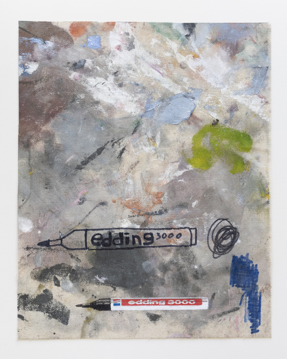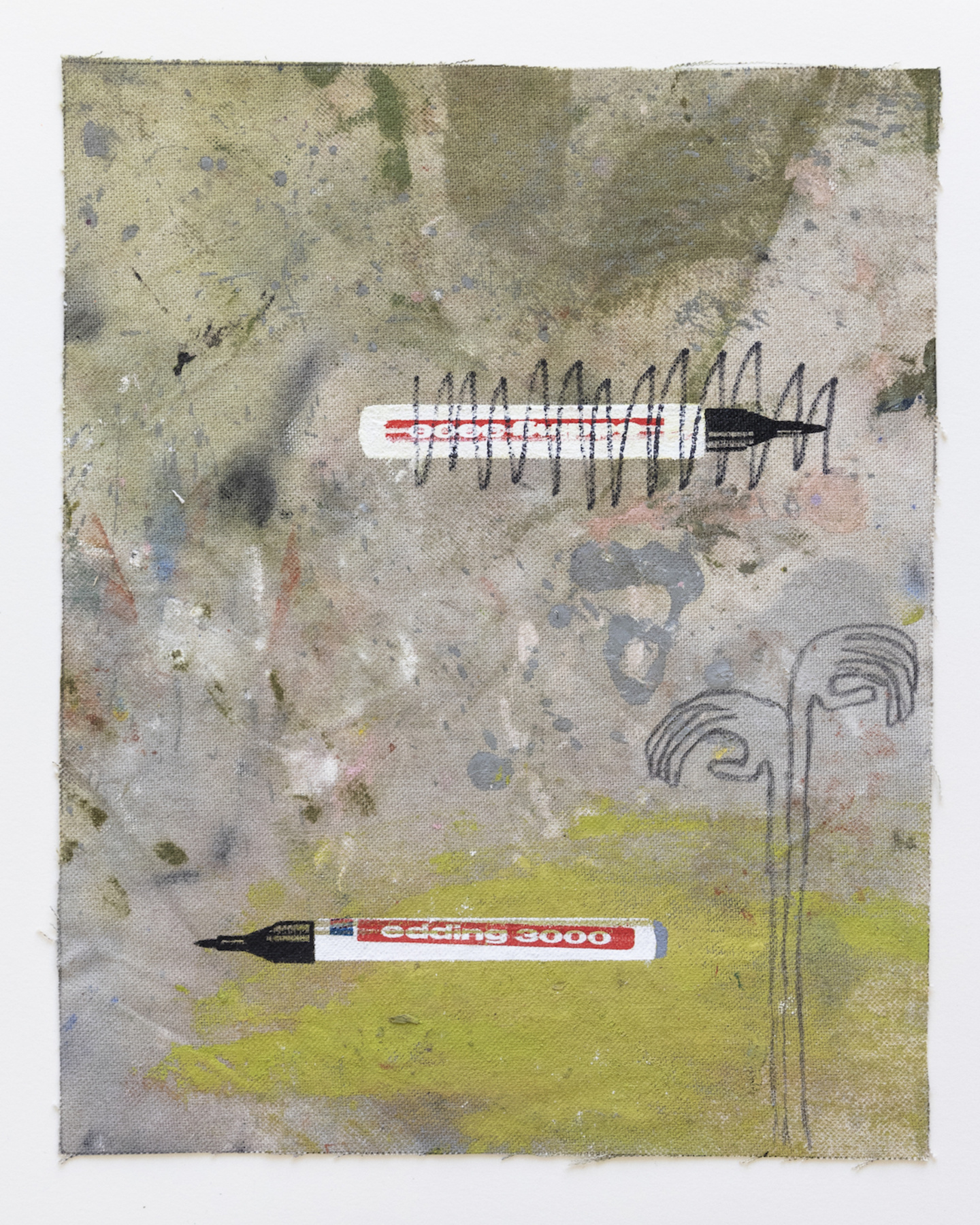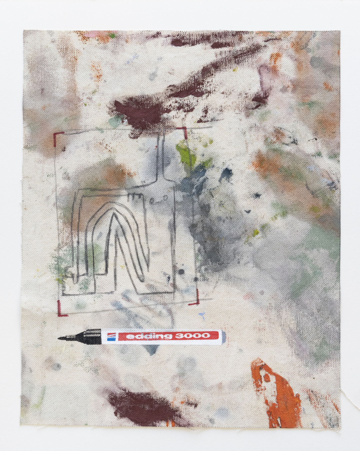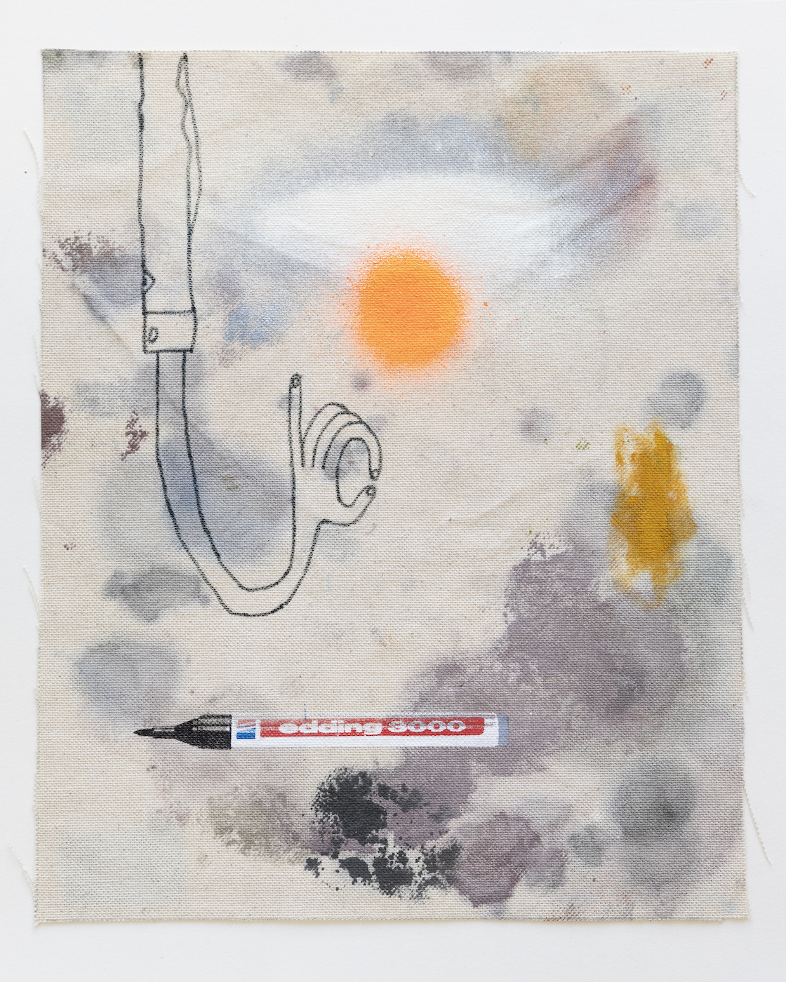 Sophie Ullrich nutzt für ihre Edition Stoffstücke, die beim Bauen der Leinwände abfallen. Auf den sogenannten Malerlappen werden die Pinsel abgestrichen oder Farbkombinationen ausprobiert, die Ableger ihrer Malerei sammelt und zieht sie als Skizzen immer wieder für Ideen heran. Der Farbauftrag ist passiv im Gegensatz zur aktiven Malerei auf den eigentlichen Leinwänden. Der Edding, ein immer wiederkehrendes Motiv in ihren Arbeiten, kommt mittels Siebdruck ebenfalls als indirekter Farbauftrag dazu. Die narrative Zeichnung wird individuell aufgetragen und macht jede Arbeit zum Unikat. Die Edition spiegelt ihre Schnittstelle zwischen Narration, abstrakten Bildelementen und schematischen Hintergründen wider.