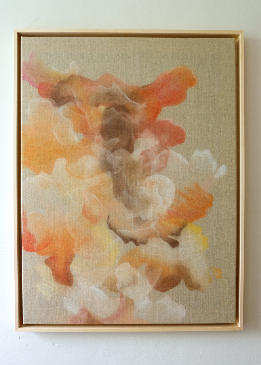 Im Rahmen ihrer künstlerischen Praxis beschäftigt sich Sanja Henning mit den subtilen Ausdrucksformen des menschlichen Körpers im Kontext von manifestierten biografischen Spuren sowie akuten Phänomenen. Ihre neuesten Arbeiten widmen sich dabei der Phase körperlicher Veränderung. Sei es die Pubertät, das Altern oder eine Schwangerschaft: Wenn unklar ist, was kommt und was bleibt, ist das Verankern im Jetzt der zuverlässigste Halt, der zu bekommen ist. Während das Denken in Zeiten solcher Ungewissheit kaum zu einer effektiven Bewältigung des partiellen Identitätsumbruches beitragen kann, sind es vor allem ein notwendiges Sich-Hingeben und das prozessbegleitende Fühlen, das einen mit der Veränderung und in sie hineinwachsen lässt. Die innere Wahrnehmung bezeugt den Wandel in verdaulichen Häppchen; die Malerei fungiert als Übersetzung in die neue Form.