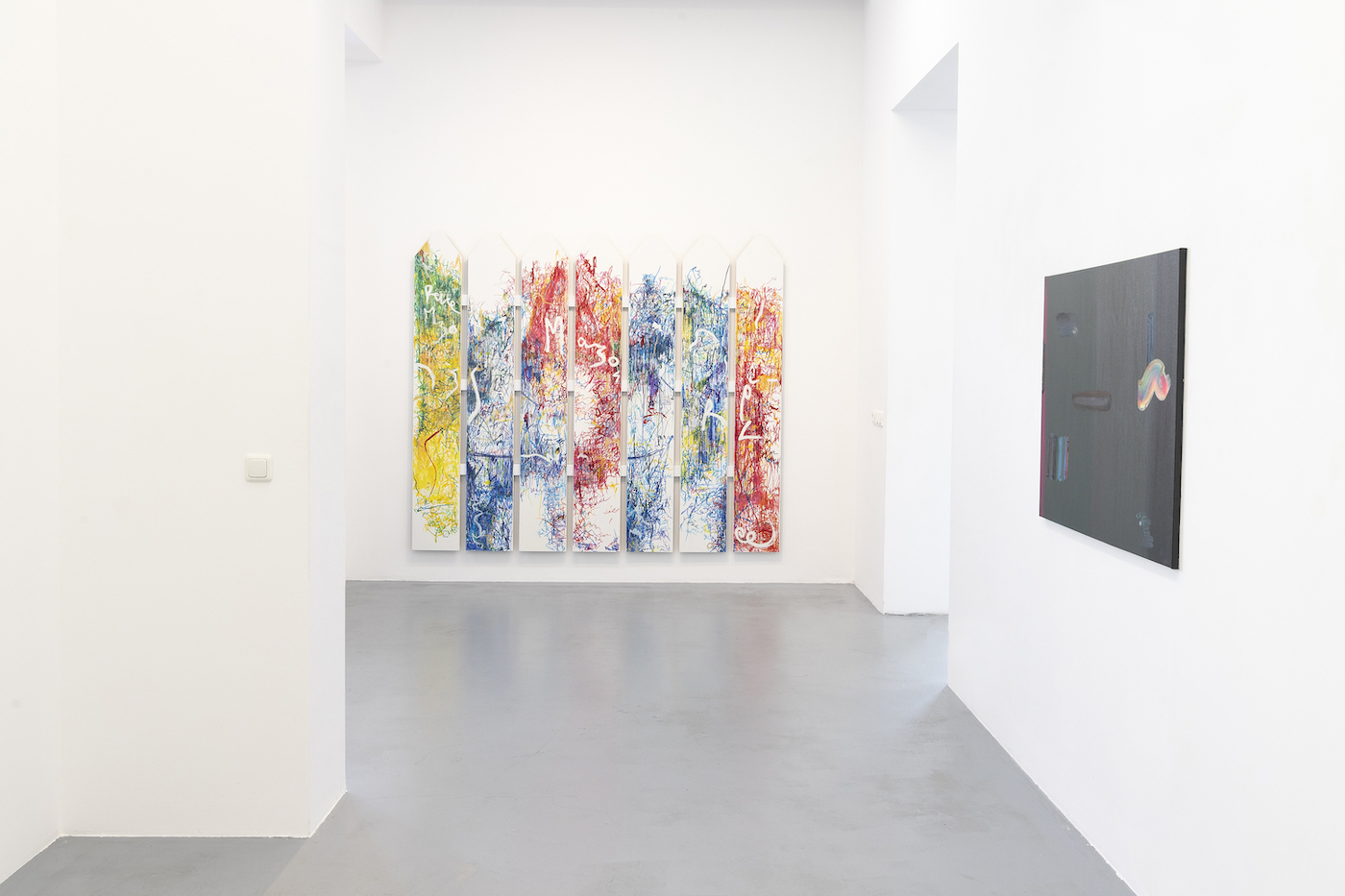 Auf den Leinwänden der Künstlerin Olga Mos spannen sich Landschaften, ihre Malerei kann als Reise gelesen werden. Die Arbeiten zeigen keine mimetische Naturnachahmung, sondern gleichen einer Projektionsfläche, die das Eintauchen in ein Gefühl der Umgebung zulassen. Die Werke sollen Mensch und Welt in Beziehung setzen, auf den konstruierten Sinn und Wert der Landschaften verweisen. Sie geben Anlass, jene Grenzen, die durch unsere eigene Wahrnehmung gezogen werden, zu hinterfragen, sich selbst zu positionieren und konstruierte Gegensätze verschwimmen zu lassen. Dabei befinden sich die Arbeiten in fließender Bewegung. Der bewusst gesetzte Abstand zwischen den Bildern verweist dabei gezielt darauf, dass jedes Werk trotz des Zusammenspiels für sich steht und versinnbildlicht gleichzeitig den Entstehungsprozess: Die Bilder befinden sich – ähnlich der Landschaft – in ständigem Werden. So lässt sich im Einzelnen wie im Ganzen eine Landschaft der Wahrnehmung – eine Geschichte der Entwicklung entdecken.