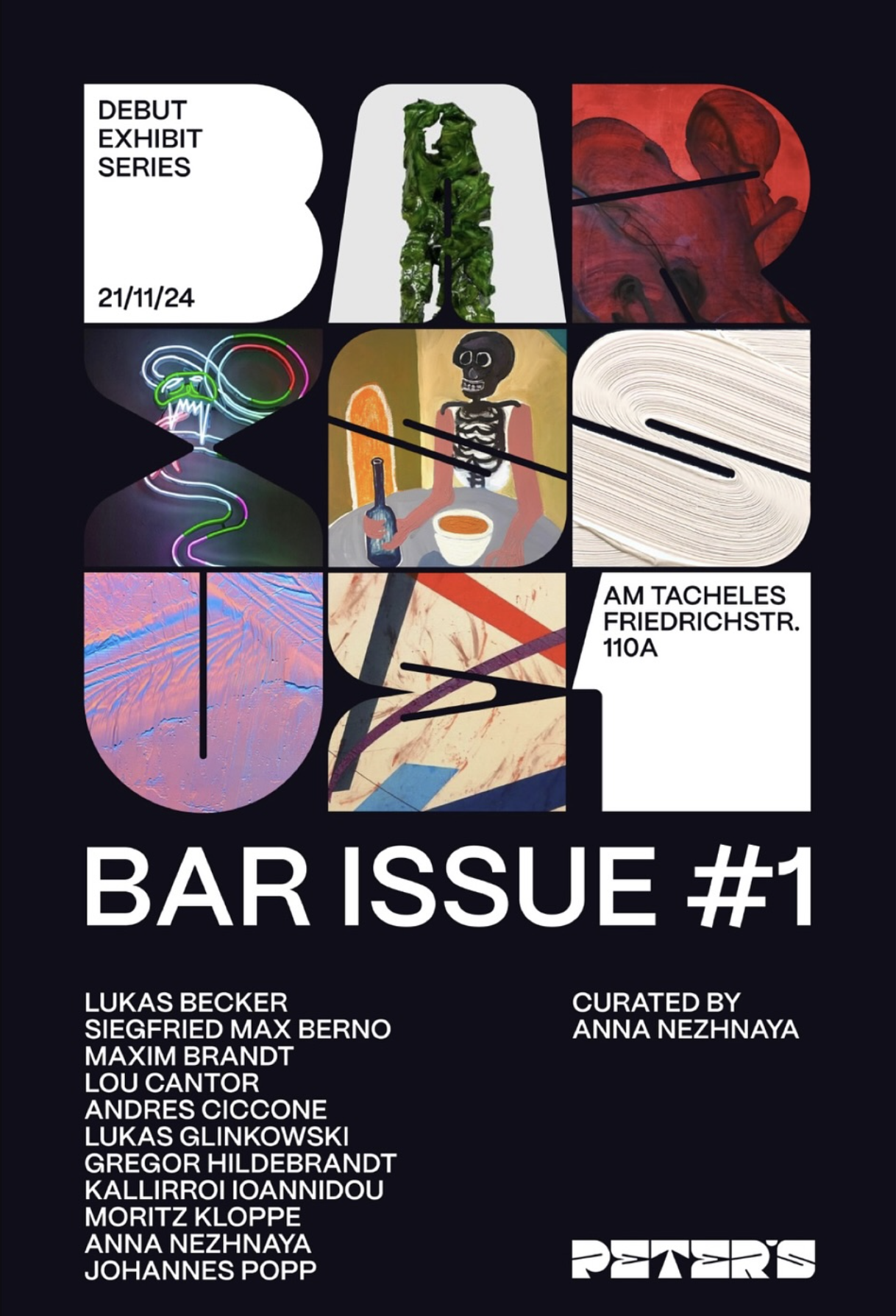 Teilnehmende Künstler:innen: Lukas Becker, Siegfried Max Berno, Maxim Brandt, Lou Cantor, Andres Ciccone, Lukas Glinkowski, Gregor Hildebrandt, Kallirroi Ioannidou, Moritz Kloppe, Anna Nezhnaya, Johannes Popp