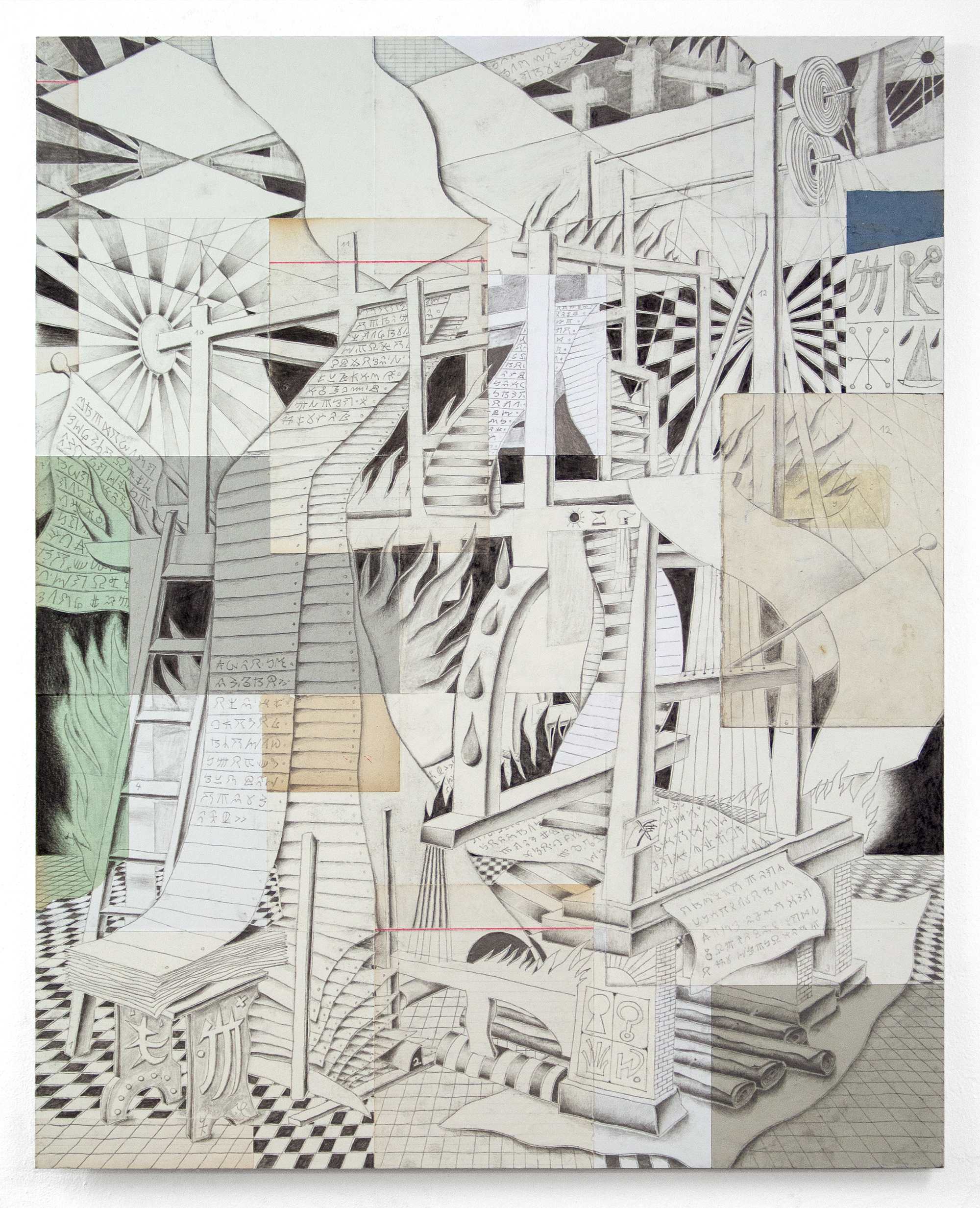 Im Mittelpunkt der Arbeit des Künstlers Yannick Riemer steht die Entwicklung einer eigenen kryptischen Sprache. Mittels eines selbstgeschriebenen analogen Codes transformiert Riemer Texte in Formen. Ursprüngliche Textinhalte werden so zu abstrakten Kompositionen, die anschließend nur noch mit Hilfe eines Schlüssels lesbar werden, welcher den Betrachtenden jedoch vorenthalten wird. Kernelement der künstlerischen Praxis Riemers stellt dabei die Arbeit an zeitlich unbegrenzten, genreübergreifenden Serien da, die sich im Laufe der Zeit stetig miteinander verweben. Dabei entsteht ein Geflecht an inhaltlich, zeitlich, als auch formal stark verbunden Werkreihen. Jede Arbeit ist somit immer nur Teil und Anstoß des Prozesses, aber nie Abschluss.