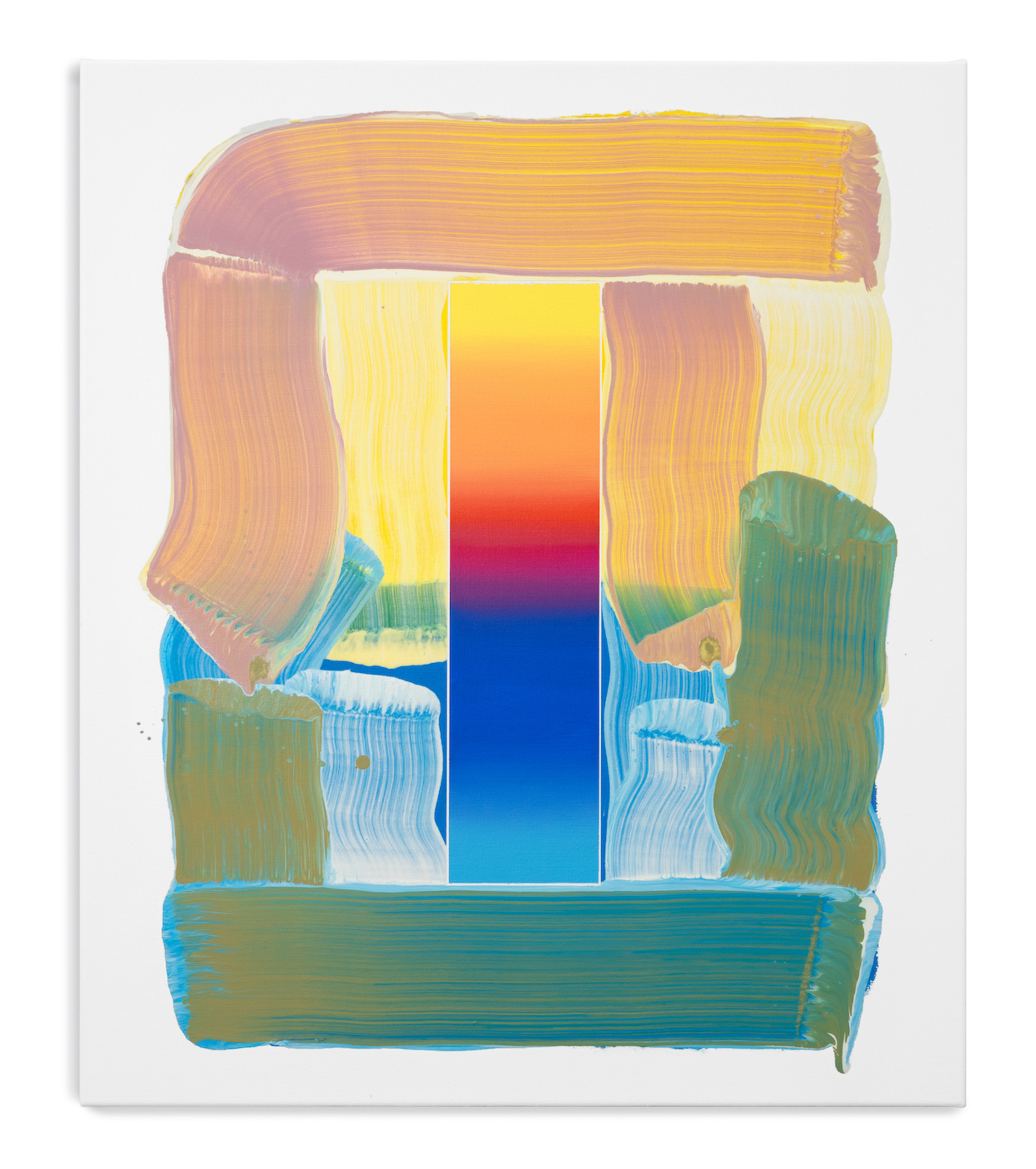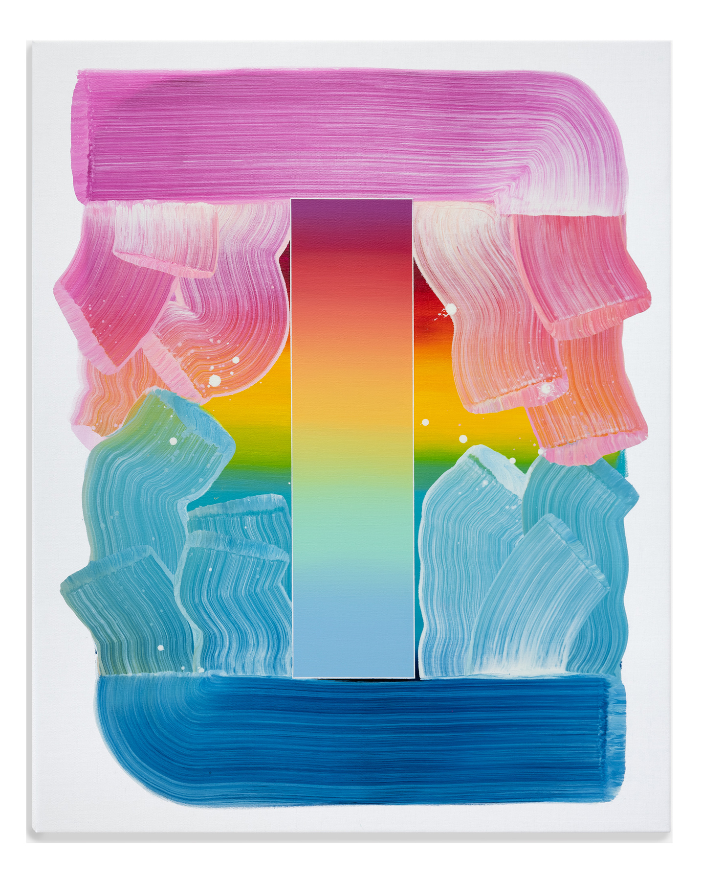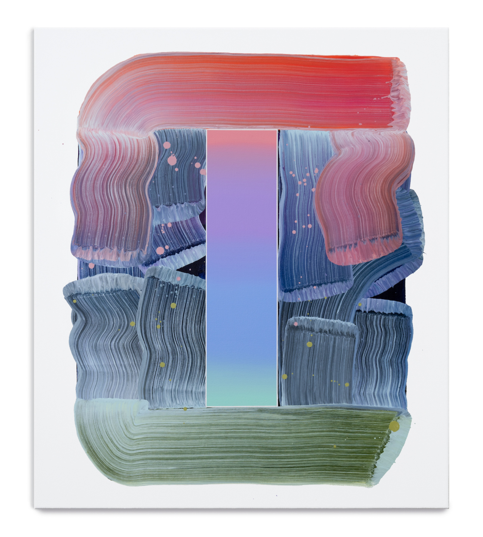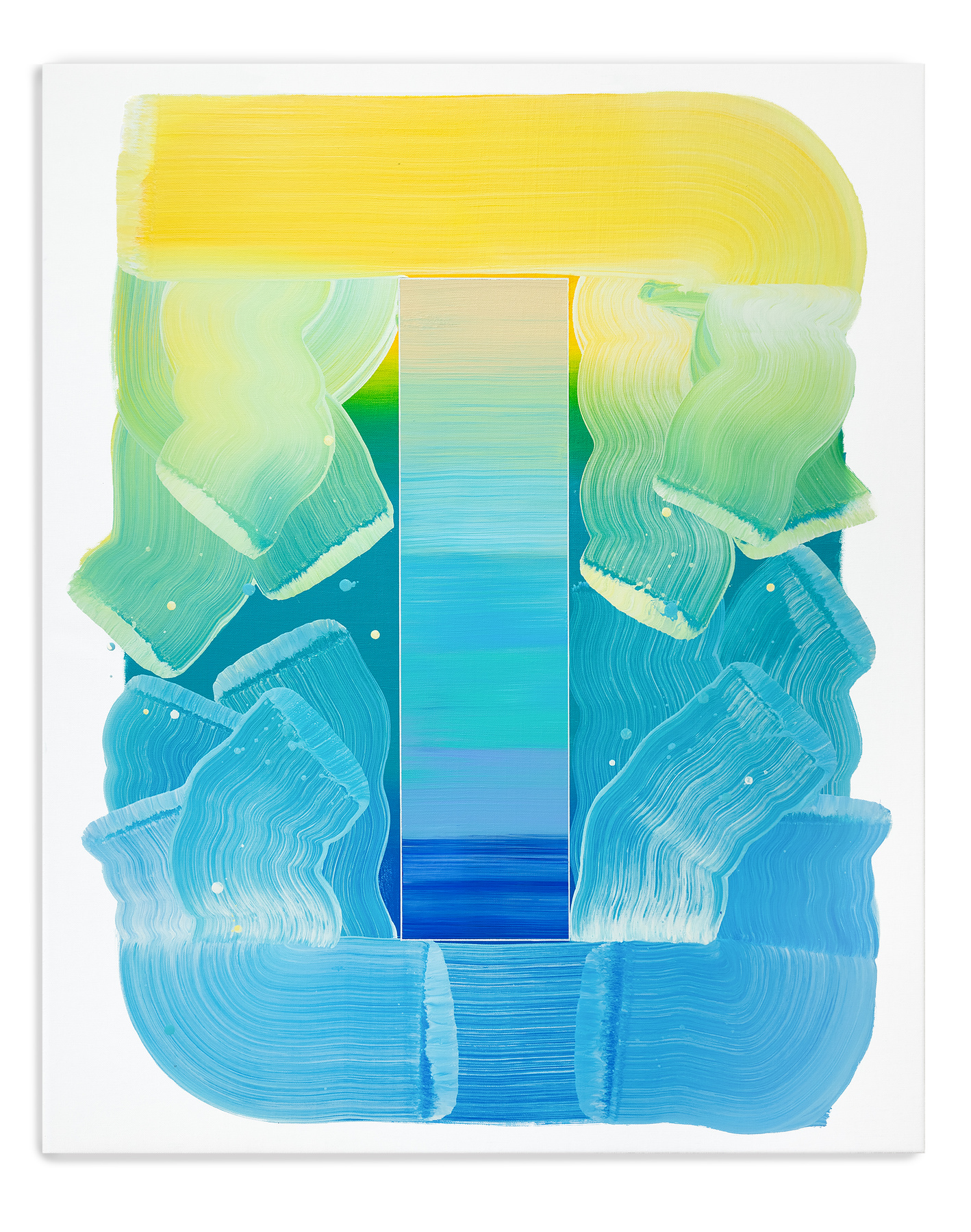Obwohl ihre Werke in der figurativen Tradition verwurzelt sind, haben sie sich über die Jahre hin zu einer abstrakten Formensprache entwickelt. Im Zentrum ihres Schaffens steht eine von ihr entwickelte Form, die geometrische Präzision mit der spontanen Geste des Pinselstrichs vereint. Diese wiederkehrende Struktur dient als visuelles „Gefäß“, das der Farbe – von Natur aus formlos – eine klare Ordnung gibt. Sie ermöglicht es ihr, sich auf das zu konzentrieren, was sie besonders interessiert: die Interaktion und Wirkung von Farben, ihre Schichtungen und ihre Transformationen im Zusammenspiel.