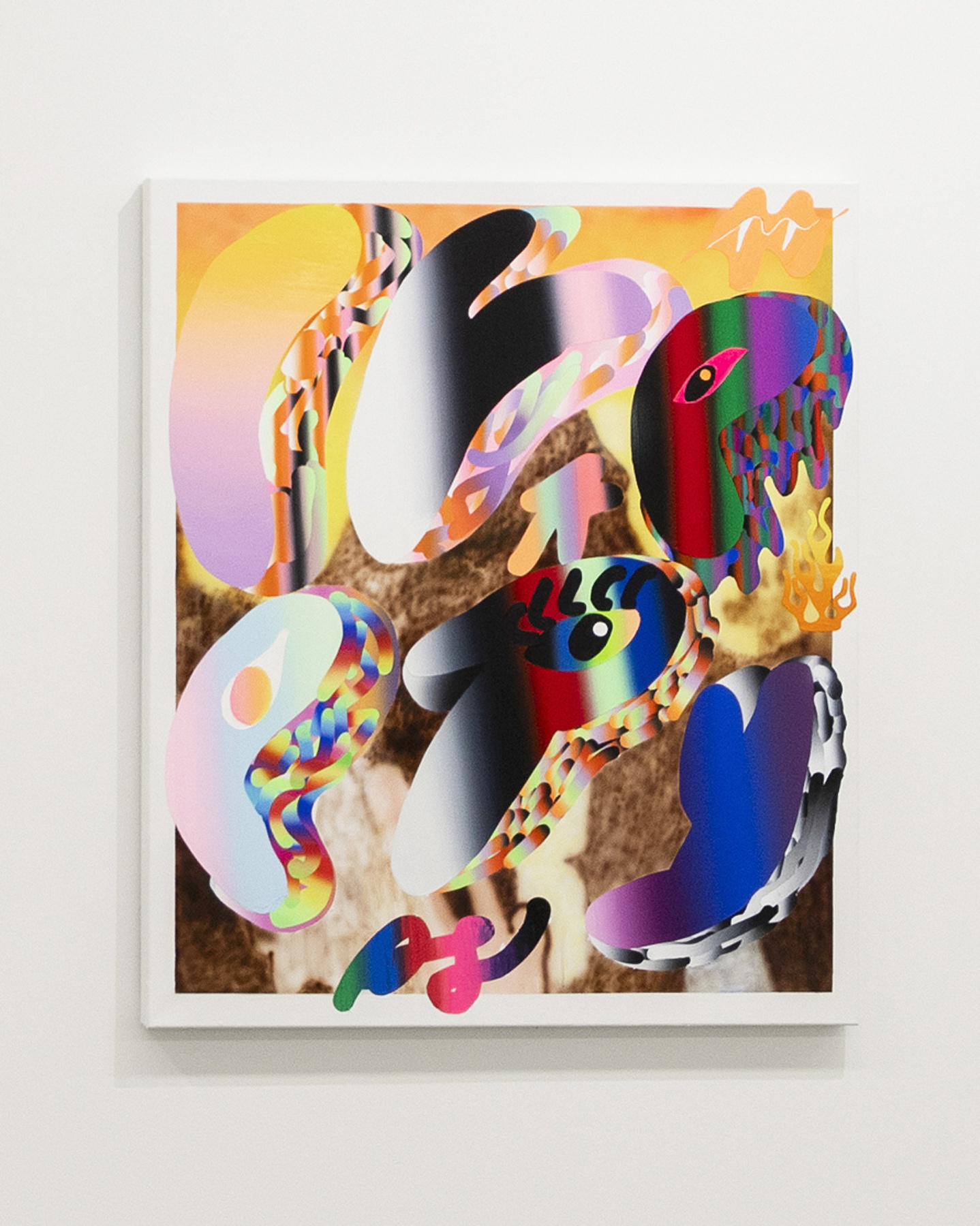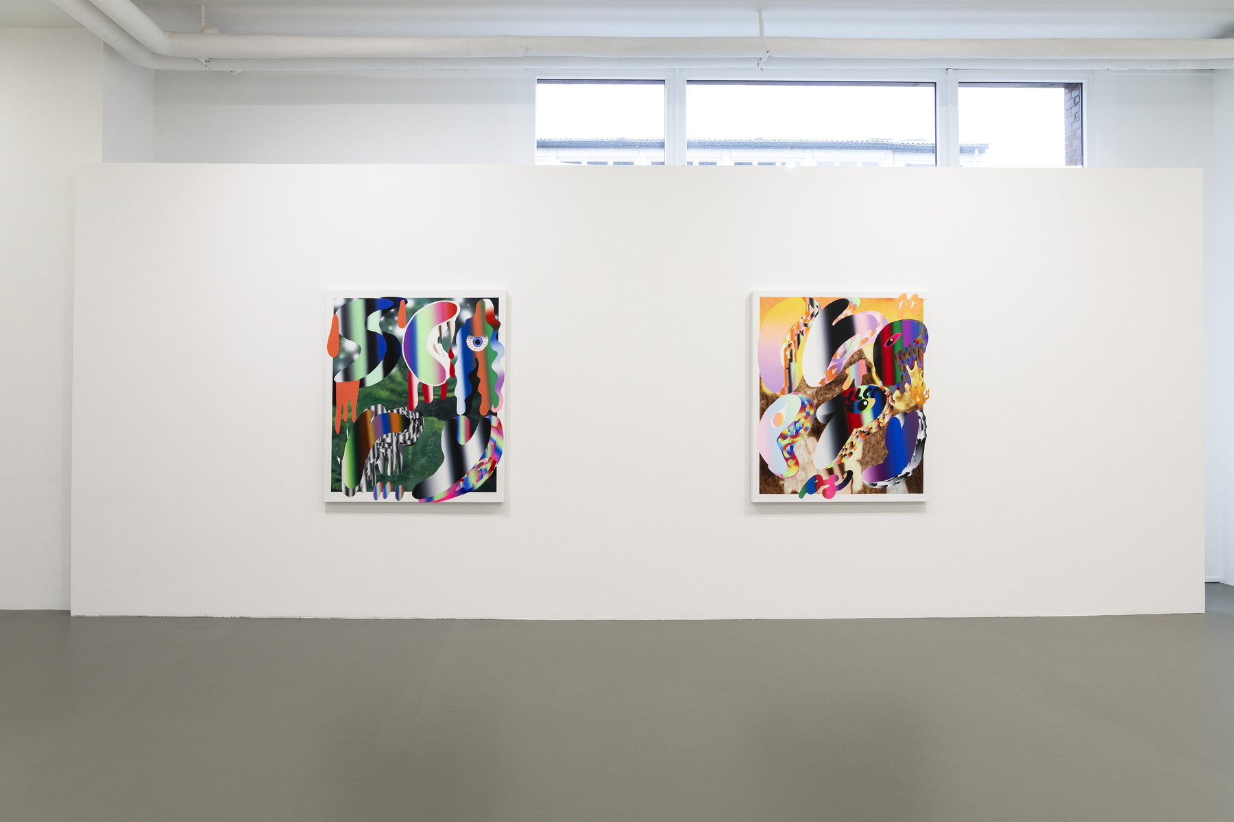 In the exhibition, the artist is once again using the medium of canvas works for the first time. These are characterized by the creation of his own typeface, which is based on the synonyms "scary", "spooky" and "creepy". In this context, the artist explores the rich diversity and nuance of the English language, which has been historically shaped by various sources and influences. The words, through their historical depth and nuance, allow for precise expression and add linguistic diversity to the exhibition.