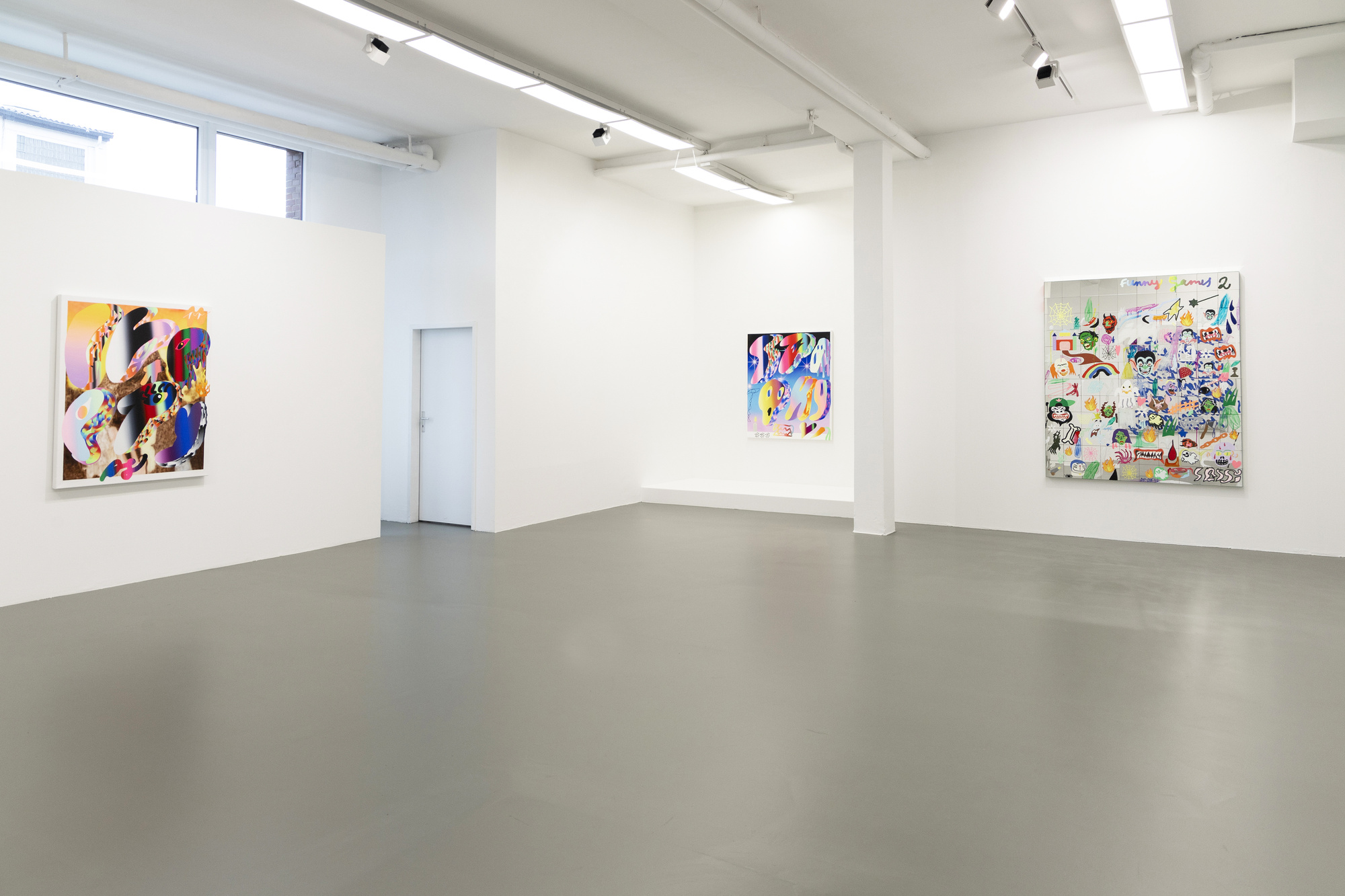 The exhibition But then I Was Reborn As A Witch finds its inspiration in the paradoxical depiction of war and threat in children's programs, particularly through the use of friendly characters to convey complex concepts. Glinkowski chooses a similarly friendly approach of cute yet scary elements such as ghosts, monsters, vampires and zombies. The works, colorful and dynamic, transport the viewer into a narrative world nourished by a child's imagination.