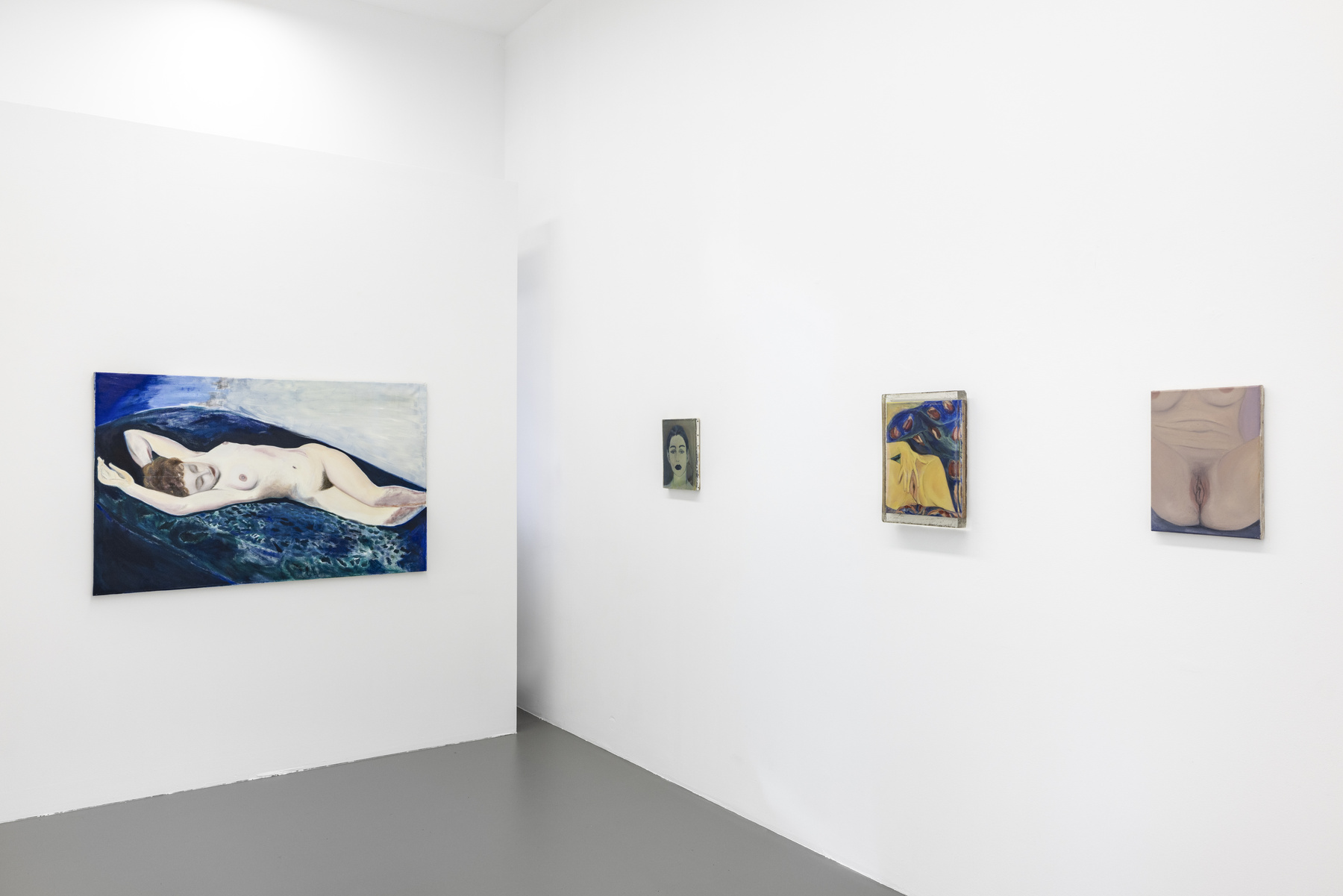 Femininity, blood and flora, but also destruction, longing and despair are some of the motifs from which Klara Virnich draws a deep beauty. Her oeuvre ranges from painting and sculptural works to performances and video works, all of which mutually stimulate each other in a constant dialog and can be perceived and thought of both individually and intertwined. On the basis of culturally established topoi, she creates dreamlike, unconscious worlds that force their way into our reality with subtle artistic means and become fairytale-like, morbid horror scenarios. This becomes particularly clear in her performative works. The recurring allusions to iconic, but also stereotypical images of women are transformed into a personal story in which their connotations are reversed. A female perspective is stolen from the male gaze and, conversely, imposed on the male body in the same way. This becomes particularly clear in Virnich's painterly works, such as the group "Femmes Aquarelles" (watercolor on paper & kappa, continuous). The supposed fragility of the carnal body and one's own psyche is also exposed as resilience. She performatively hits canvases with a hammer, which she has previously coated with a thick layer of polyester resin. What remains are cracks that run through the glassy material like flowers. Traces of violence become an aesthetic device and leave the viewer with an unsettling cognitive dissonance. The work "Van" (Anthropometry, lipstick on fan, 2021/22) consists of numerous anthropometries of vulvas that have left kiss-like imprints on 100 silk fans with the help of lipstick paint, which spread out before our eyes like butterflies. We are reminded both of the almost menacing red mouths in Virnich's portraits of women and of Yves Klein's deep blue anthropometries, in which he objectified women's bodies with a brush. Here, too, the art-historical connotations of the female body are reversed in terms of color (blue to red), medium (silk fan instead of paper) and process. Not only because of the special feel of her aesthetic, which results from her material fetish, her works are characterized by an exuberant eroticism, but also by violence and the interplay between closeness and distance, intimacy and voyeurism. The overall picture of a contemporary condition féminine can be read from these complex structures.