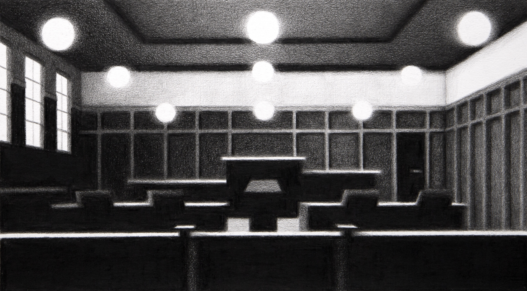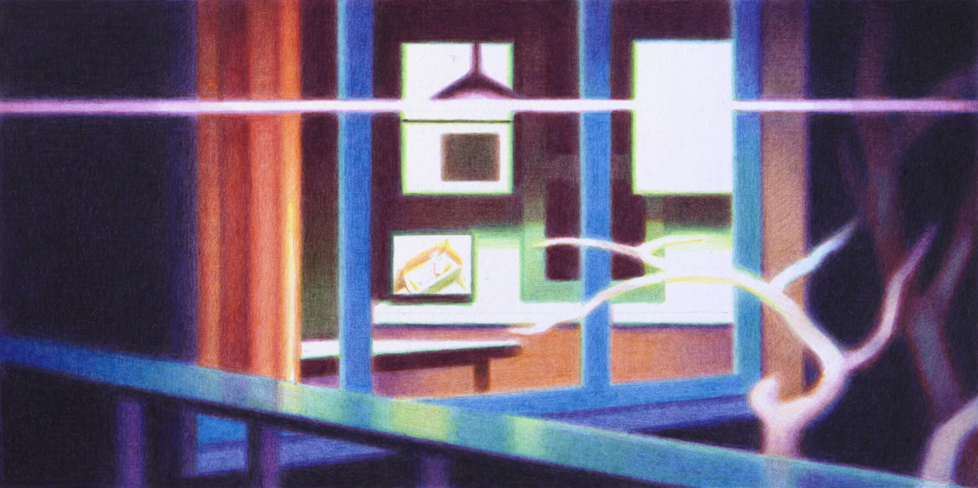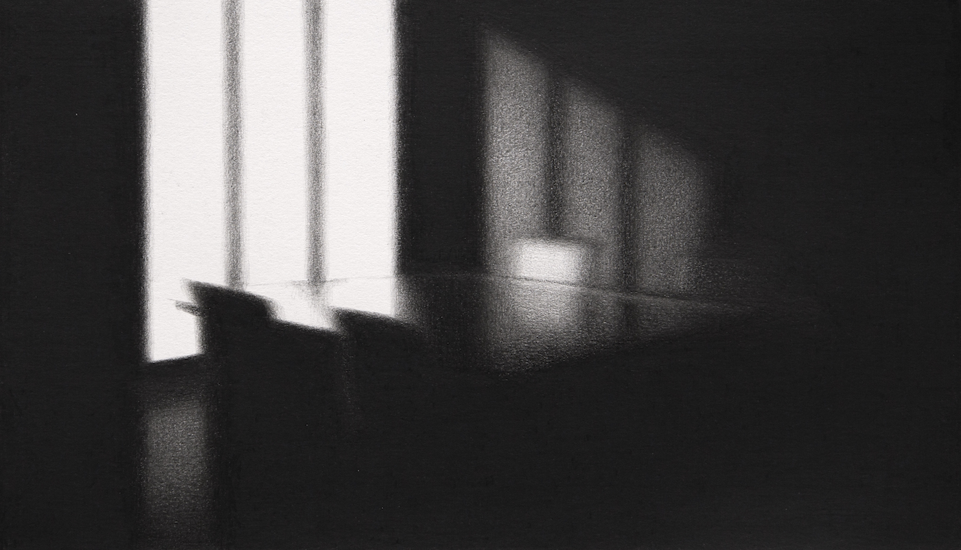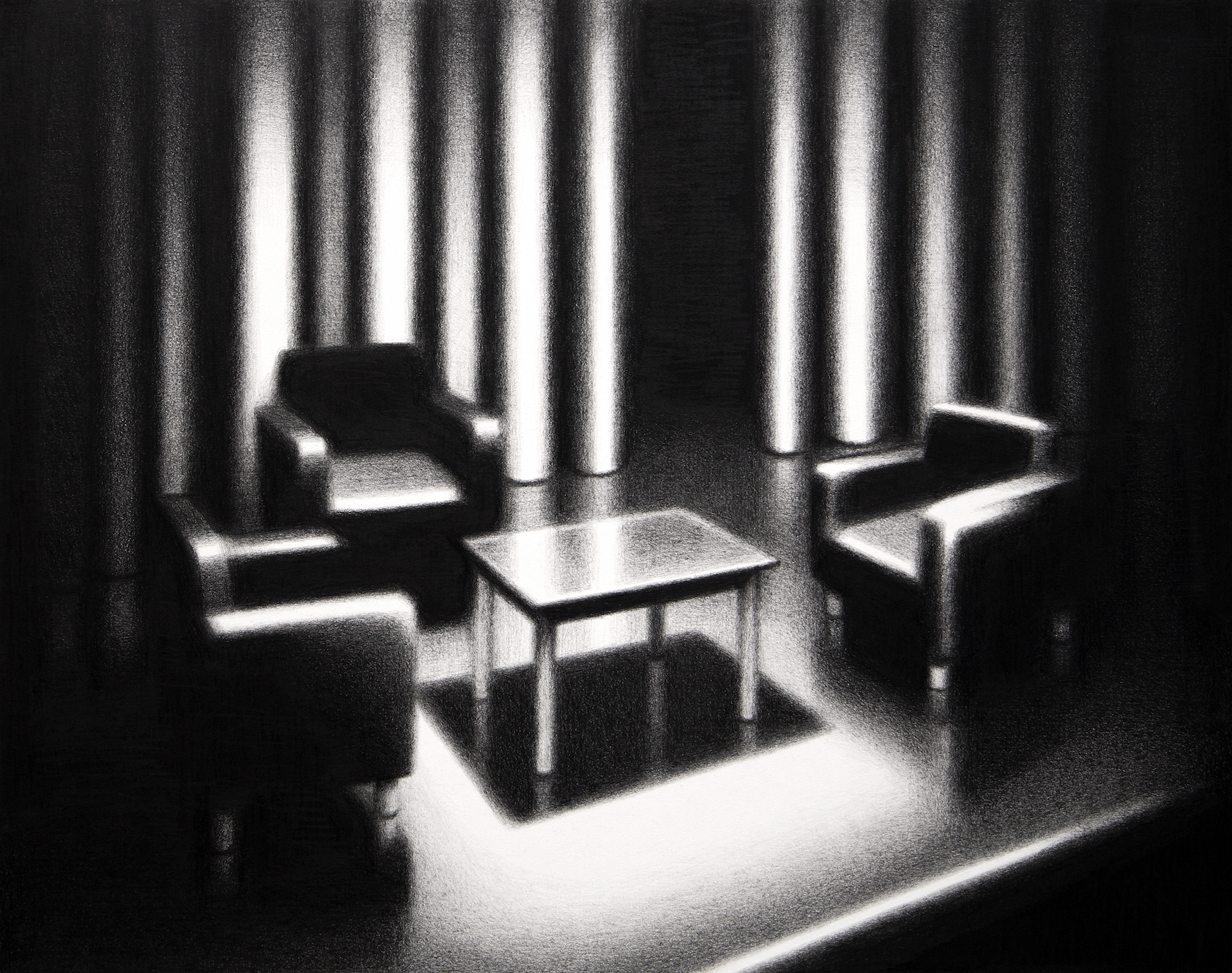 Spaces in the light of night and twilight, deserted, enigmatic, mysterious. You think you know them, these places, and yet they are not part of the usual and everyday. - They are perfect. Without traces of use and without the imprint of time, they become models, prototypes of our imaginary cosmos. The collective memory of the Western world, its dream of efficiency and flawlessness constitute the pictorial treasure that Steffen Kern's art reflects. "The image and film production of the 1950s and 1960s played a key role in the post-war TV media revolution. The equipping of most Western households with television sets meant that many people were confronted with very similar or the same images, ushering in a globalization of images," he says, which also explains why his paintings do not take photographs as their point of departure - or at least not directly. The flood of ever-similar images that we encounter every day in films and photographs are only the last reflection of basic models that are sanded down and aligned with each other through this constant repetition.