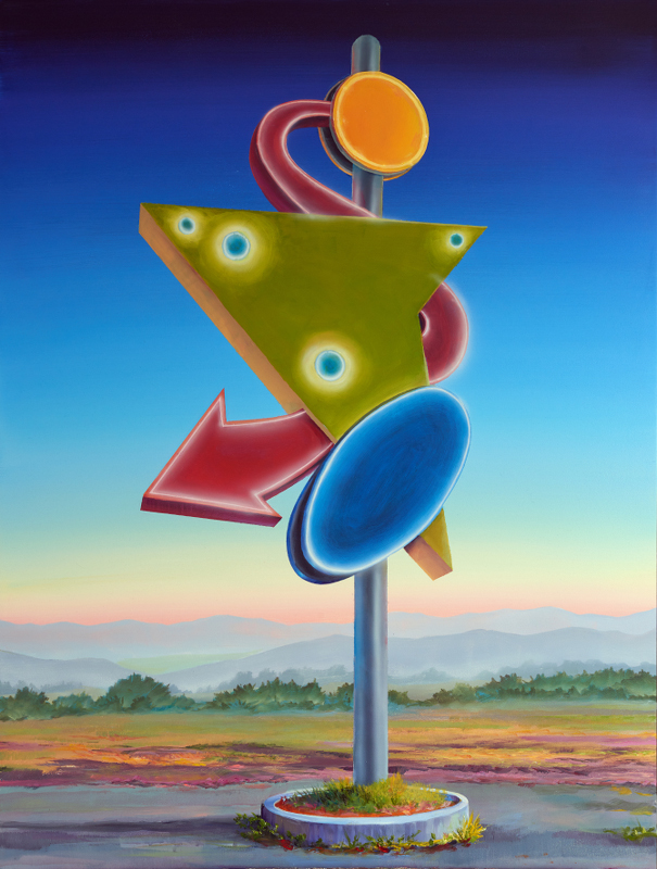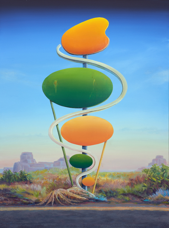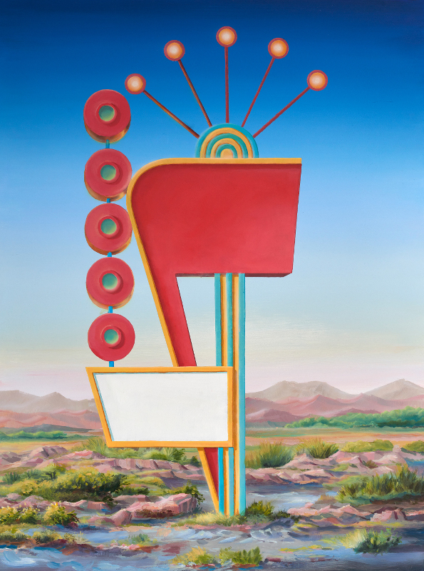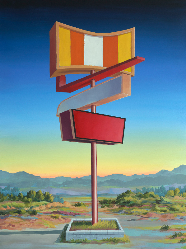For the past 15 years, Johannes Kersting has been involved with photography and its painterly potential. Now the pendulum is swinging back and Kersting, who studied painting with Hans-Peter Reuter, is once again devoting himself entirely to working with the brush. This turn makes the occupation with both media appear as a mutually enriching interplay. New works from this intensive lockdown-fueled questioning of painting are now on view for the first time. The works shown are inspired by several project trips and road trips through the USA, whose romantic potential is additionally underpinned not least by the longing motor of currently restricted freedom to travel. Human relics become forgotten, completely overwrought sculptures in the middle of nowhere. The images oscillate between abstraction and reality. Urban scenes, motel designs, stripped of their meaning and any writing, celebrate the formal exaltation of our will to design.