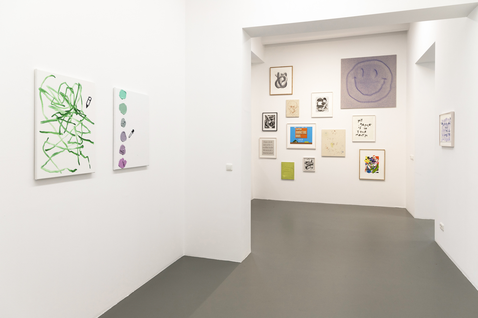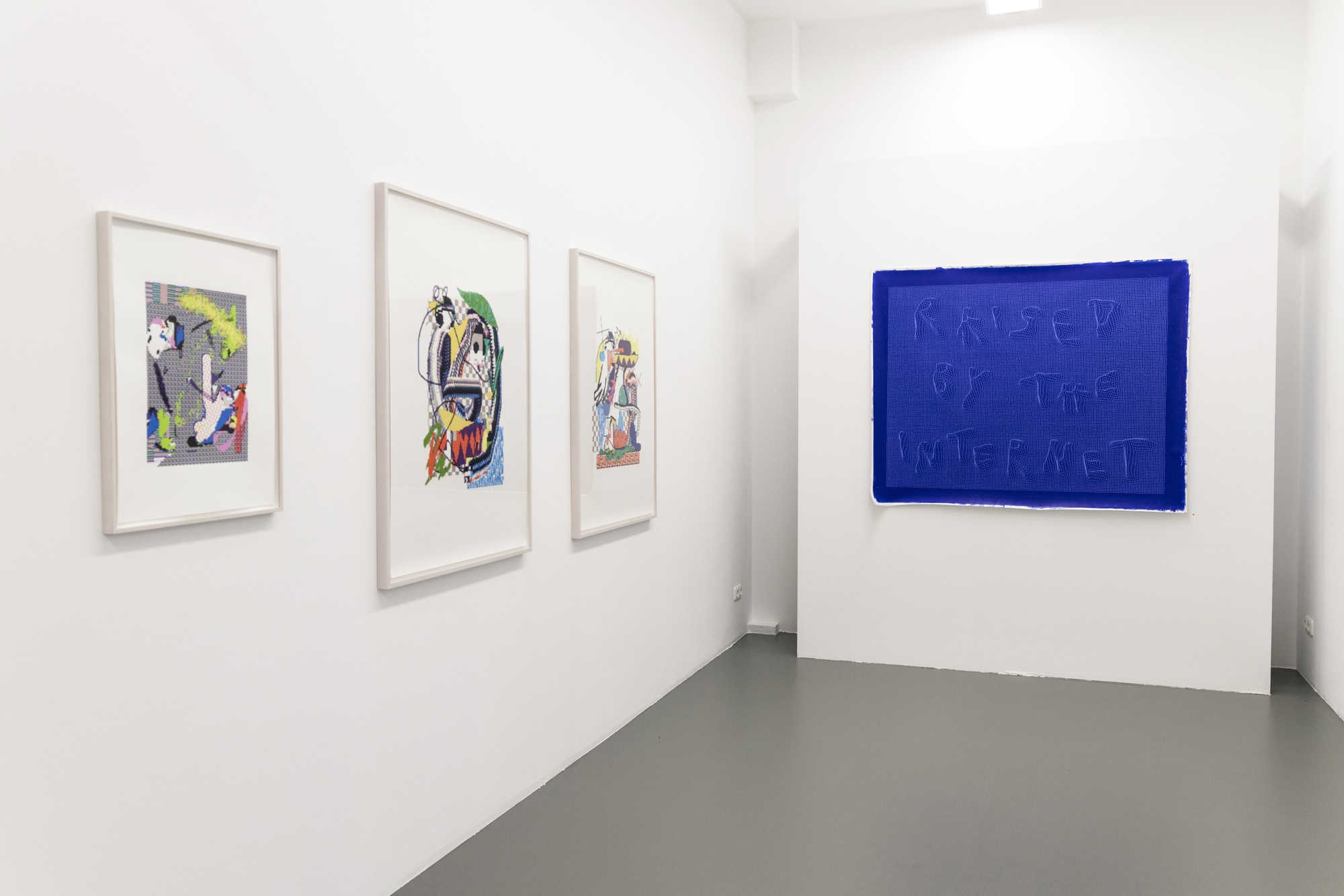 My Name is in Your Mouth is an invitation to reflect on the relationship between digital and concrete space, an exploration of the possibilities of enlivening and auratizing cool digitality through manual interventions. The exhibition sees itself as a performative, manual process of realizing pictorial objects that originate from a sphere of accelerated image reception. Beck combines techniques of representation and motifs that do not actually belong together, thus creating a materialized, contextual shift in art.