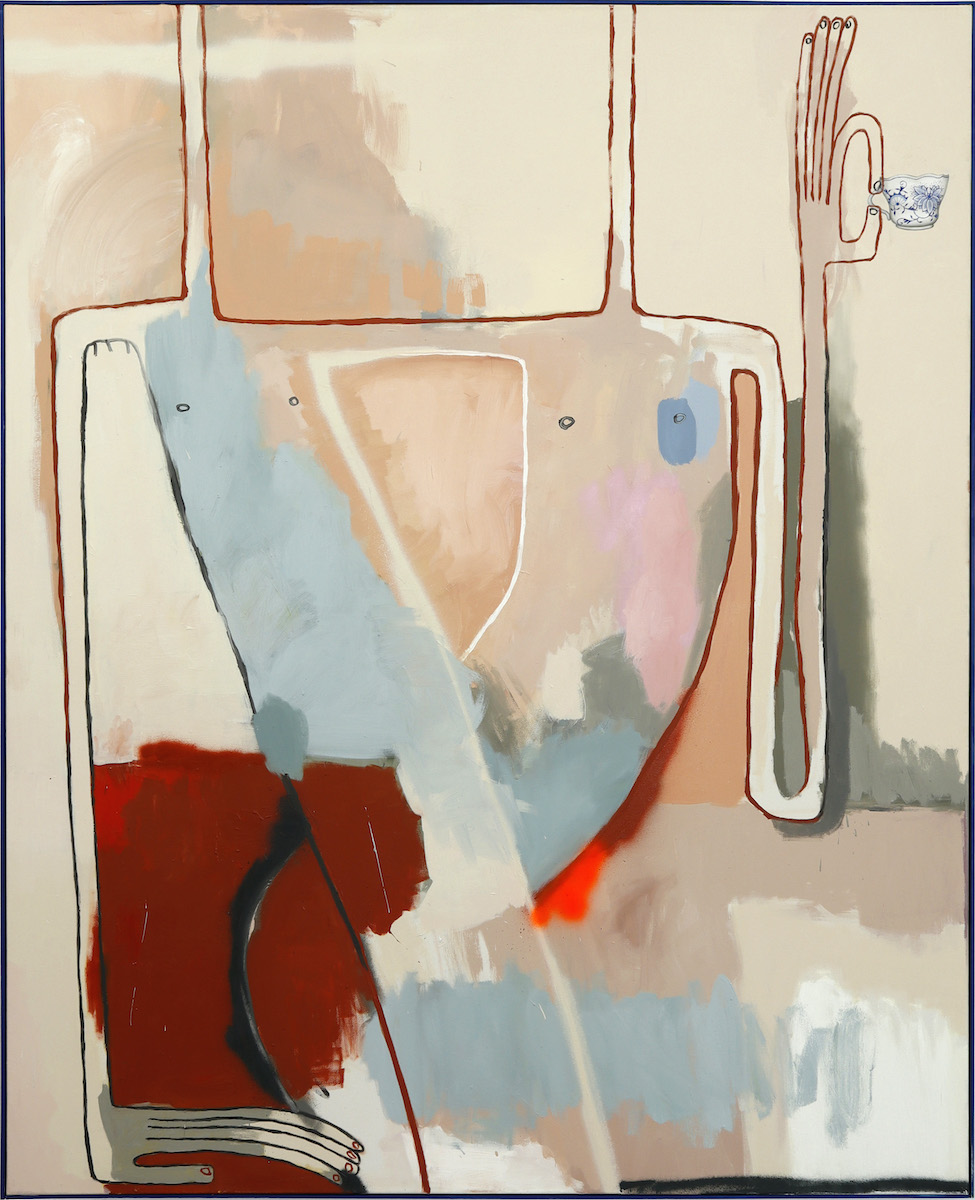 A comic-like stylized figure characterizes Sophie Ullrich's pictures. The outlines, mostly reduced to arms and hands, combine abstract pictorial elements and schematic backgrounds with accurately painted objects. In this humorous narrative, the neutral protagonist slips into a wide variety of roles, enabling the appropriation of a wide variety of objects and consumer items. Recalling advertising aesthetics, her works seem like the painterly satisfaction of media-mediated desires and needs. At the same time, her artistic approach describes a playful exploration of the classical subjects of portraiture and still life in times of potentially interchangeable identities in our selfie and social media society.