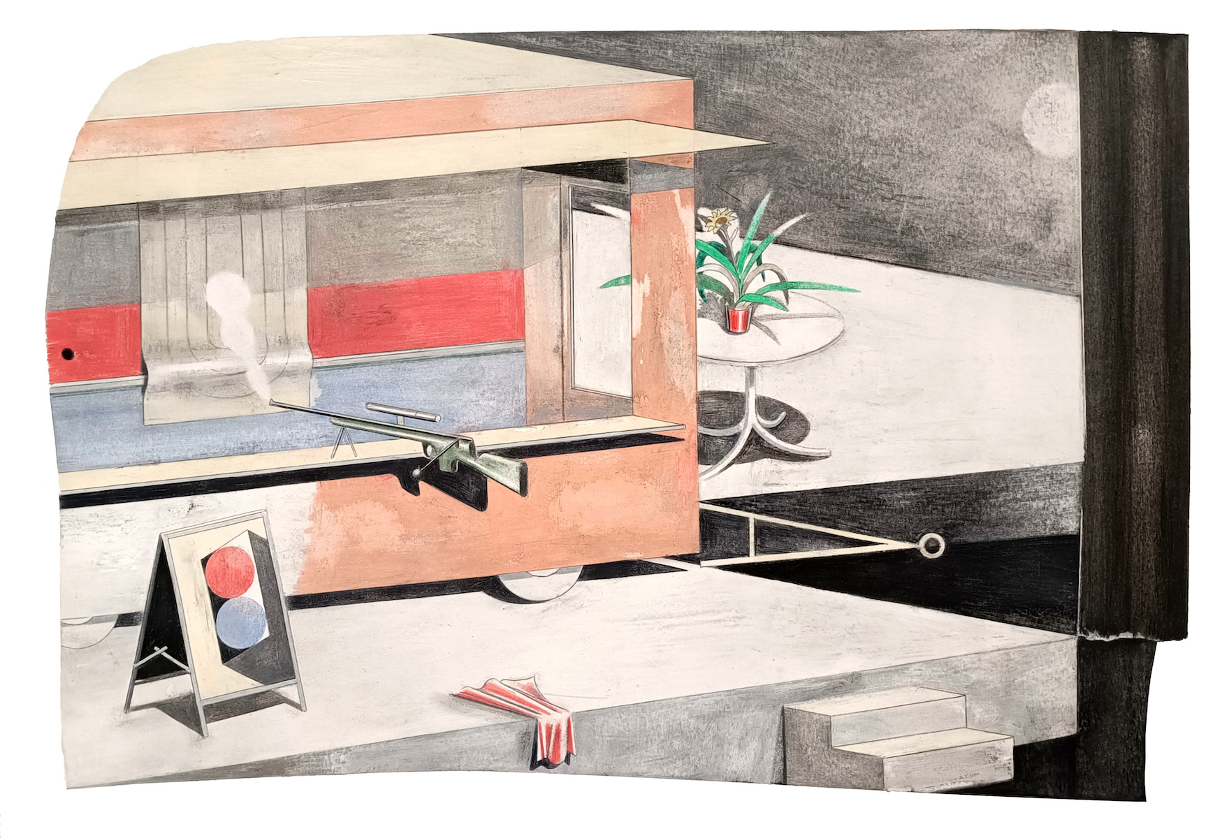 Die Farbstiftzeichnungen von Janosch Dannemann zeigen Fantasiegebilde, welche aus fehlerhaften Erinnerungen und Träumen entstanden sind. Sie präsentieren Bühnenbilder und Figuren, die wie ein bewegungsloses Schauspiel, Parallelen zur Inszenierung im Theater aufweisen. Der Zusatz Rolodex beschreibt eine drehbare Achse vergleichbar mit den Träumen, die gegenwärtig aber nur schwer einzufangen sind. Der Künstler erschafft sich in seinen Gebilden Erinnerungen an sich selbst.