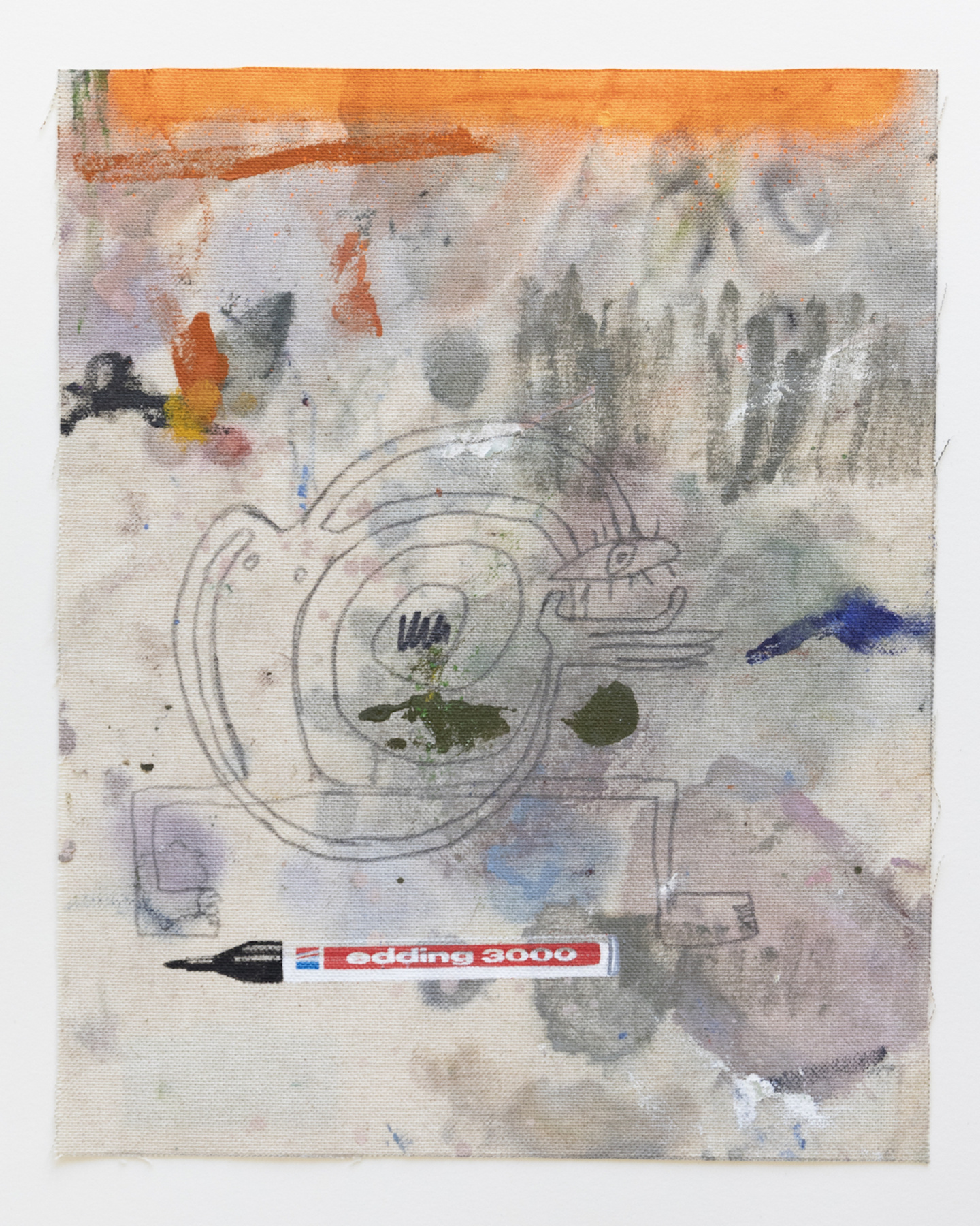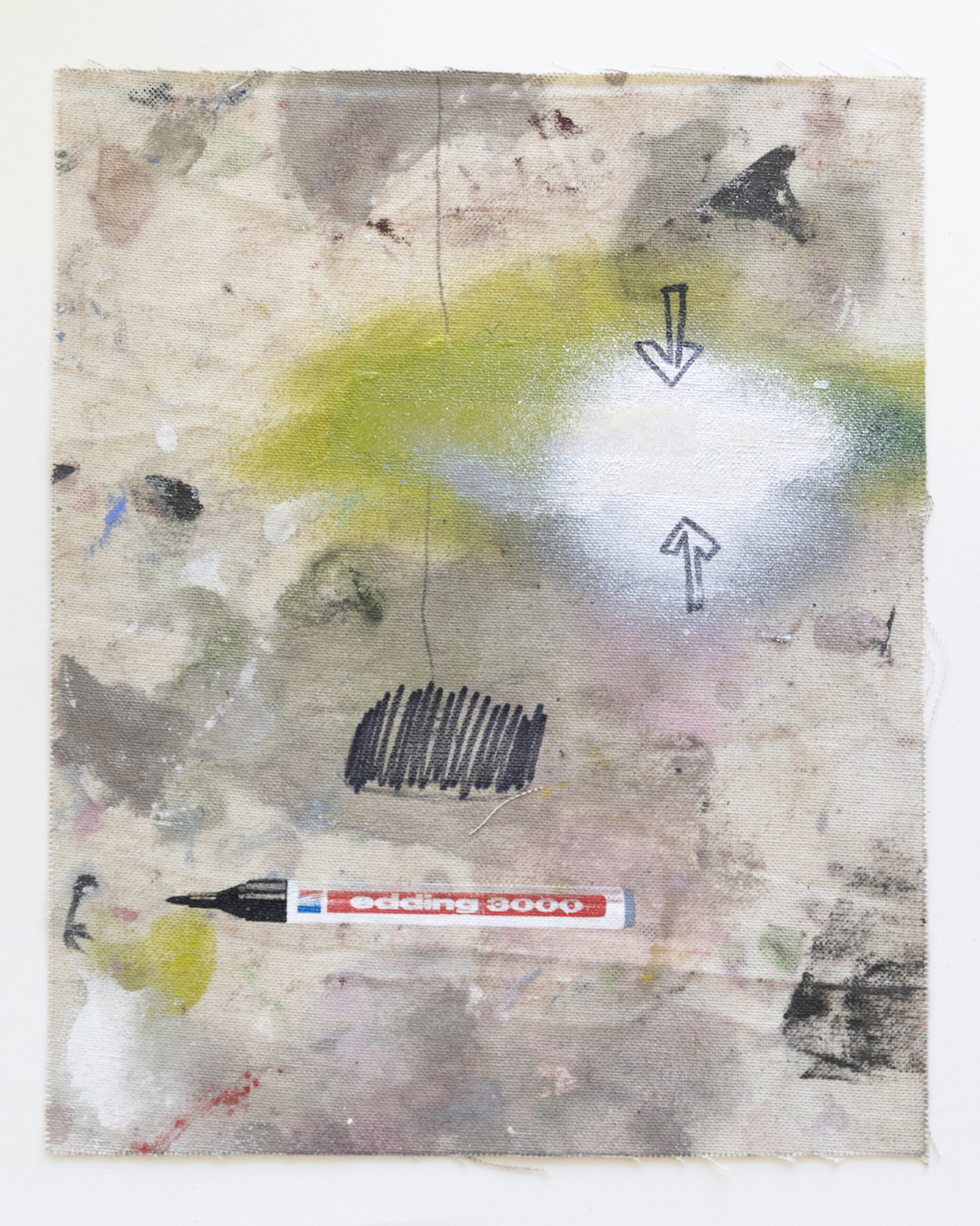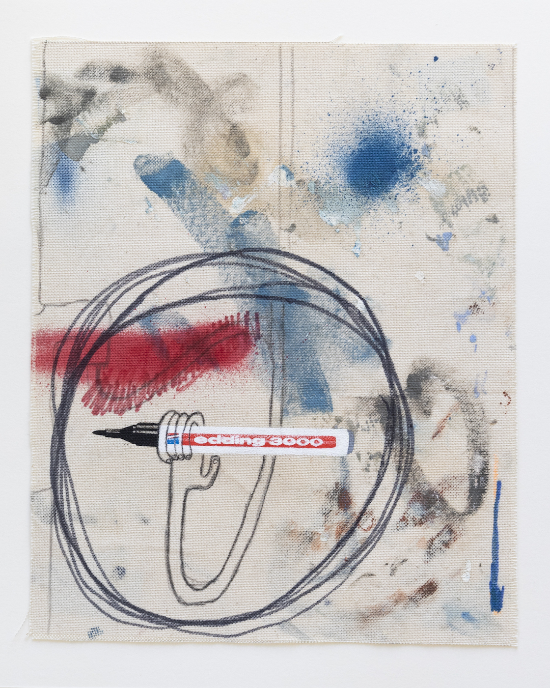 Sophie Ullrich nutzt für ihre Edition Stoffstücke, die beim Bauen der Leinwände abfallen. Auf den sogenannten Malerlappen werden die Pinsel abgestrichen oder Farbkombinationen ausprobiert, die Ableger ihrer Malerei sammelt und zieht sie als Skizzen immer wieder für Ideen heran. Der Farbauftrag ist passiv im Gegensatz zur aktiven Malerei auf den eigentlichen Leinwänden. Der Edding, ein immer wiederkehrendes Motiv in ihren Arbeiten, kommt mittels Siebdruck ebenfalls als indirekter Farbauftrag dazu. Die narrative Zeichnung wird individuell aufgetragen und macht jede Arbeit zum Unikat. Die Edition spiegelt ihre Schnittstelle zwischen Narration, abstrakten Bildelementen und schematischen Hintergründen wider.