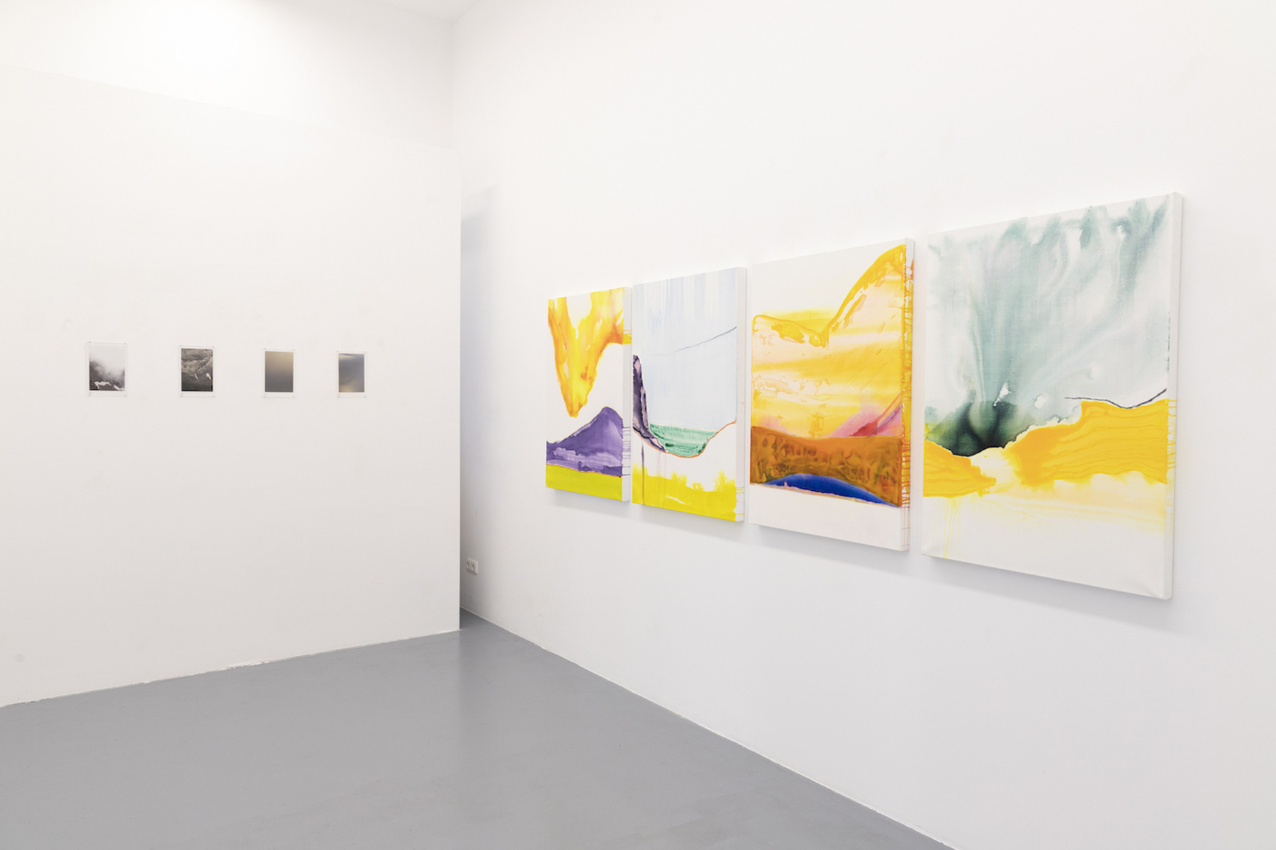 Auf den Leinwänden der Künstlerin Olga Mos spannen sich Landschaften, ihre Malerei kann als Reise gelesen werden. Die Arbeiten zeigen keine mimetische Naturnachahmung, sondern gleichen einer Projektionsfläche, die das Eintauchen in ein Gefühl der Umgebung zulassen. Die Werke sollen Mensch und Welt in Beziehung setzen, auf den konstruierten Sinn und Wert der Landschaften verweisen. Sie geben Anlass, jene Grenzen, die durch unsere eigene Wahrnehmung gezogen werden, zu hinterfragen, sich selbst zu positionieren und konstruierte Gegensätze verschwimmen zu lassen. Dabei befinden sich die Arbeiten in fließender Bewegung. Der bewusst gesetzte Abstand zwischen den Bildern verweist dabei gezielt darauf, dass jedes Werk trotz des Zusammenspiels für sich steht und versinnbildlicht gleichzeitig den Entstehungsprozess: Die Bilder befinden sich – ähnlich der Landschaft – in ständigem Werden. So lässt sich im Einzelnen wie im Ganzen eine Landschaft der Wahrnehmung – eine Geschichte der Entwicklung entdecken.