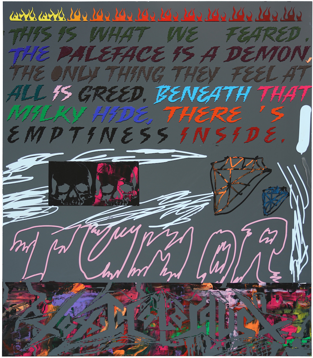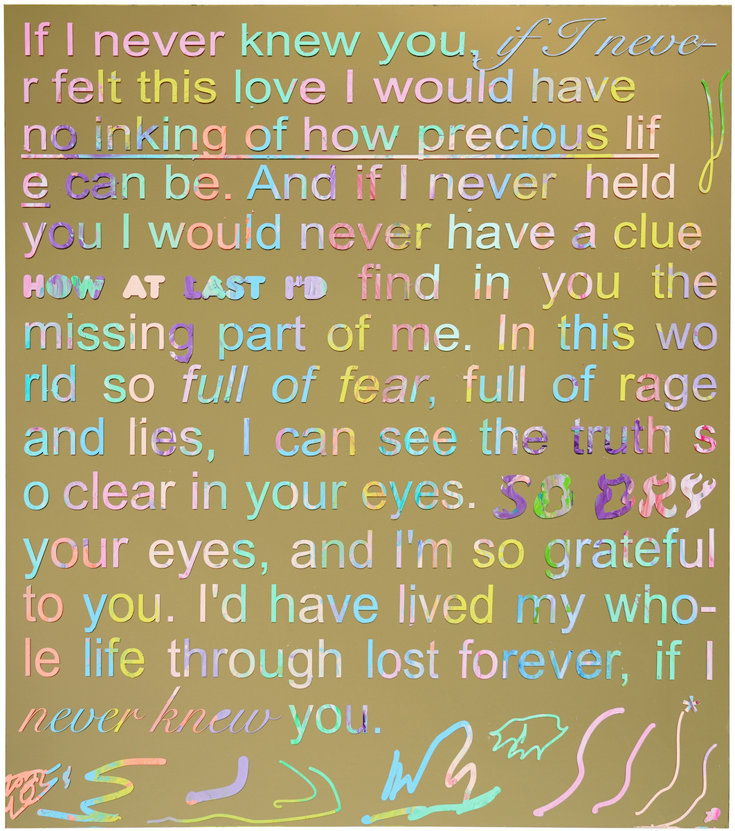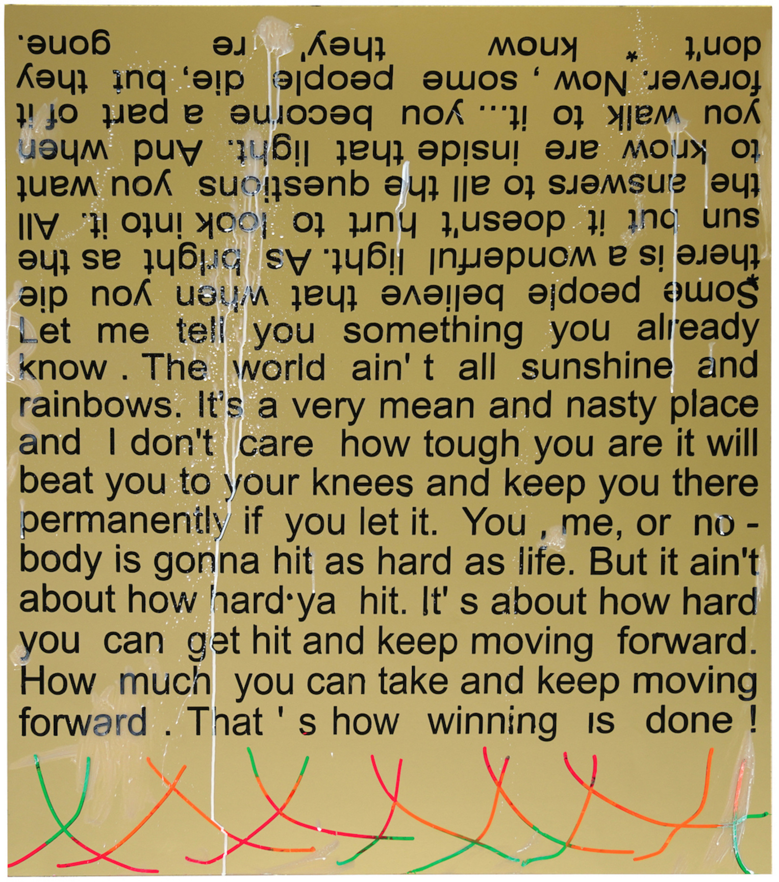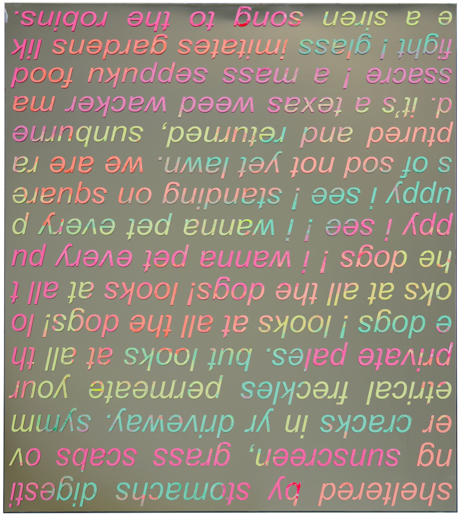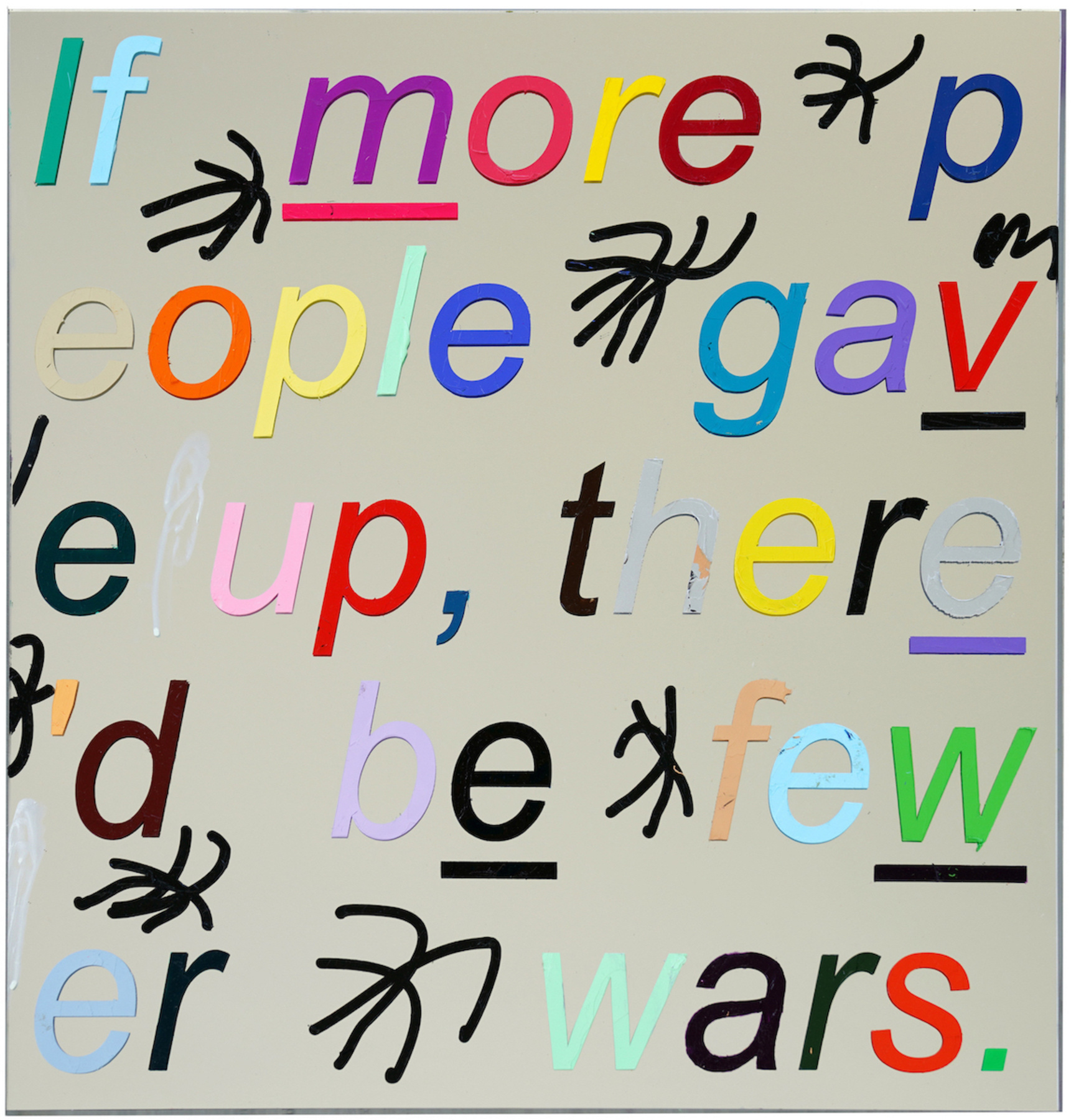 In seiner Einzelausstellung beschäftigt sich Lukas Glinkowski ausschließlich mit dem Spiegel als Material und Projektionsfläche. Präsentiert wird ein visuelles Mash-up: plakative Zitate aus Musik, Kunstgeschichte, Comics und dem urbanen Raum finden sich auf dem ungewöhnlichen Bildträger wieder. Bei oberflächlicher Betrachtung könnten die grellen Farben im Kontrast mit dem glatten Material an die Überreste einer Berliner Party-Nacht erinnern. Der intensive Blick in den Spiegel und auf die Motive konfrontiert die Betrachtenden hingegen mit sich selbst und den Fragen des Lebens, die der Künstler in Wortfetzen und Symbolen auf dem reflektierenden Malgrund andeutet.