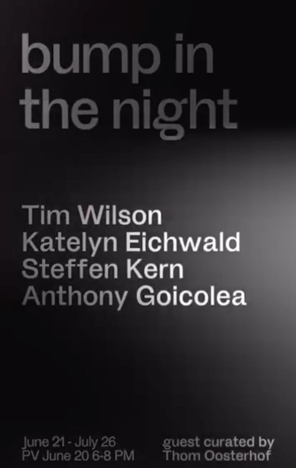 Teilnehmende Künstler:innen: Canyon Castator, Travis Fish, Brigitte Grice, Fabian Herkenhoener, Christopher Hughes, Astra Huimeng Wang, Chris Johst, Ana Karkar Taylor McKimens, Umar Rashid, Adele Renault, Sophie Ullrich, Chase Wilson, Brea Weinreb, Shin S Yamazaki, Aleza Zheng