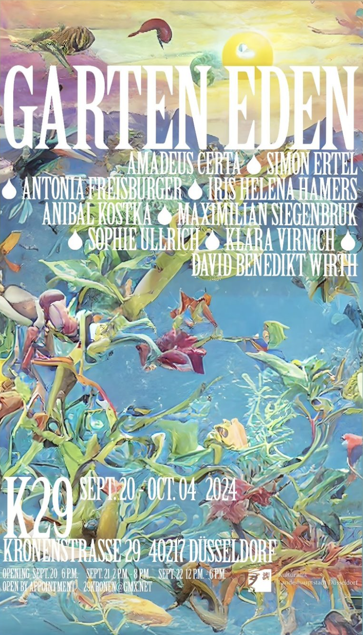 Teilnehmende Künstler:innen: Amadeus Certa, Simon Ertel, Antonia Freisburger, Iris Helena Hamers, Anibal Kostka, Maximilian Siegenbruk, Sophie Ullrich, Klara Virnich, David Benedikt Wirth