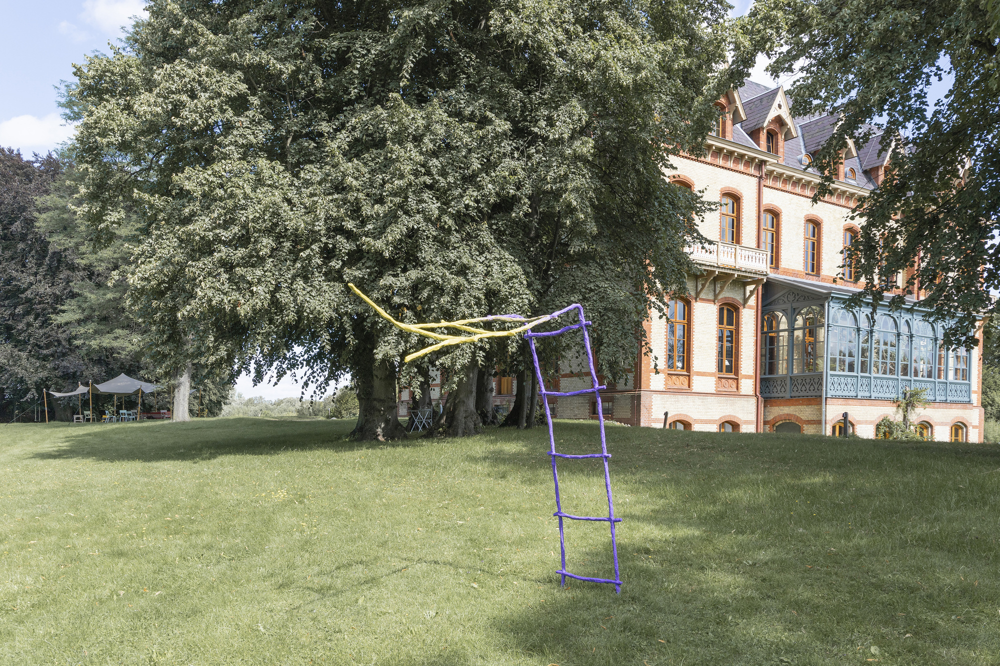 Vor den Toren Hamburgs liegt Schloss Düneck eines der schönsten Herrenhäuser des Nordens, eingebettet in eine prachtvolle Parklandschaft. Die Gastgeber Thani Huynh und Andreas Hanitsch, öffnen für die Ausstellung ON AIR ihr Haus für die Kunst. Gezeigt werden mehr als 40 Exponate im Park und in der Beletage. Viele der Skulpturen wurden von den Künstler:innen eigens für den Park geschaffen und fügen sich harmonisch in die Landschaft ein. In den Salons treffen zeitgenössische Kunstwerke auf exquisites Interior und ergeben einen einzigartigen Kontrast.