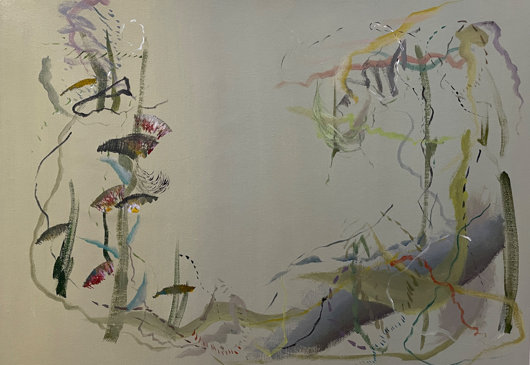 Die Werkserie There are traces to follow der Künstlerin Xintong Sun öffnet Fenster in die Symbi- ose von Spiritualität und materieller Welt. Durch ihre abstrakten Gemälde ergründet Sun die Essenz menschlicher Erfahrung und lädt die Betrachtenden ein, sich auf eine Reise der Selb- streflexion und Entdeckung zu begeben.